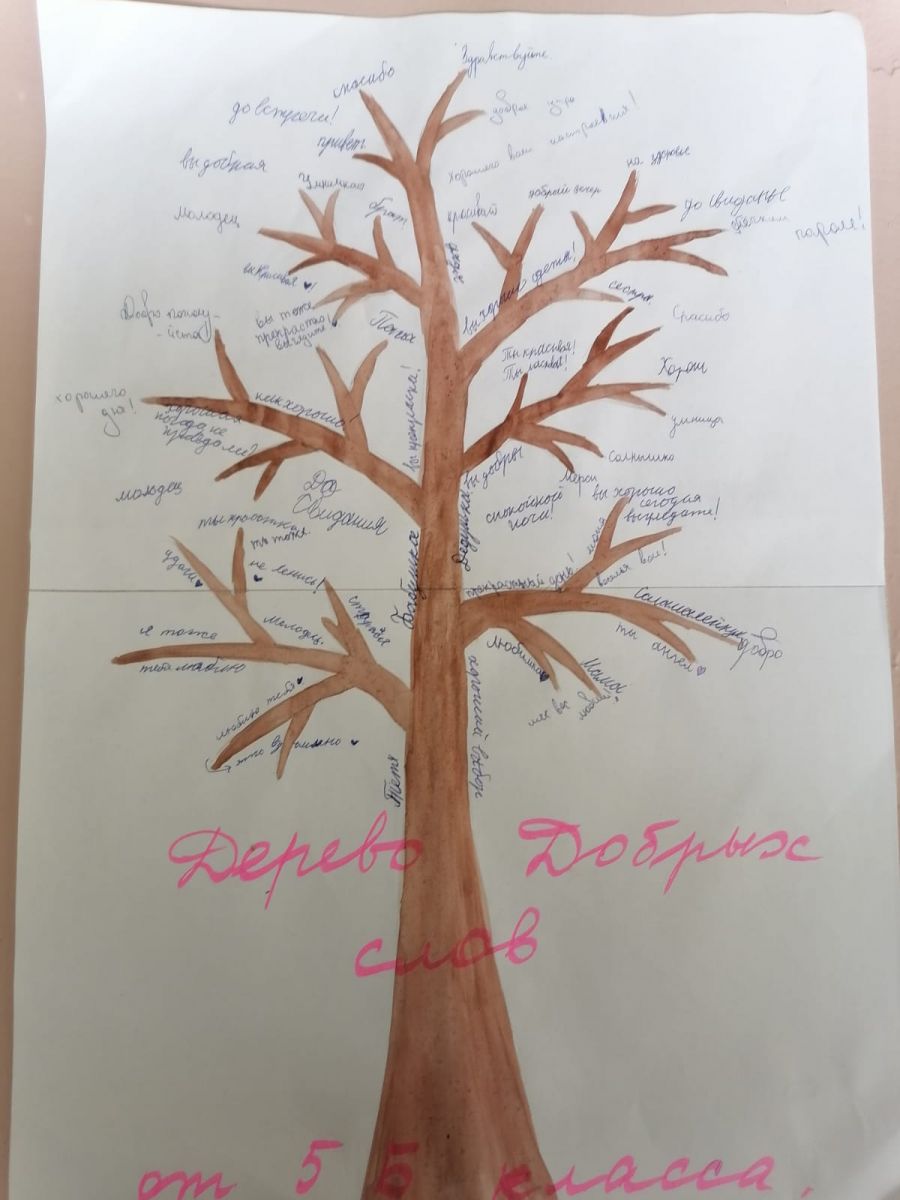 В рамках акции"Дерево Добрых Слов" ученики 5 б класса провели командную игру. Участники игры выбирали наиболее интересные и нестандартные добрые слова.