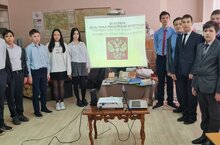 Учащиеся 8 х классов в школьном музее на мероприятии, посвящённом дню Государственного Герба РФ. Познакомились с историей создания Герба, гербами нашего города и школы. 01.12.2023