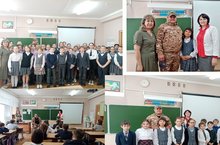 На конкретном примере учащиеся увидели, что настоящие герои живут рядом, что мужество, храбрость, любовь к Родине – это качества настоящего патриота.Украинадагы махсус хәрби операциядә катнашучы, вакытлы ялда булучы өлкән лейтенант Бәширов Рихат Рушан улы бәлән җылы очрашу узды. Мәктәптә аның кызы Әминә 3нче Г сыйныфында укый. Рихат Рушан улы башта үзенең мәктәп елларын искә алды,нинди студент булуы белән уртаклашты һәм хәзерге вакытта хәрби зонада барган хезмәте турында сөйләде. Укучылар аны зур кызыксыну белән тыңладылар һәм бик күп сораулар яудырдылар. Безнең героебыз укучыларга армиядә хезмәт итү кирәклеге, Ватанга мәхәббәт, үз халкы алдында хезмәт бурычын үтәү турында сөйләде. Булачак солдатлар өчен әлеге әңгәмә бик кызыклы һәм файдалы булды.