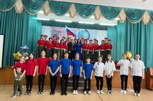 Мәктәпнең Яшь ярмиячеләр отряды җирле үзидарә советы рәисе һәм муниципаль район администрациясе вәкилләре белән берлектә Бөек Ватан сугышы ветераны Николаев Аркадий Спиридоновичны якынлашып килүче Бөек Җиңү көне белән котладылар.