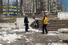 "ЭКОВЕСНА-2022" набирает обороты. Учащиеся 8А класса приводят отведённую им территорию в порядок. Они убирают мусор, который накопился после зимы.