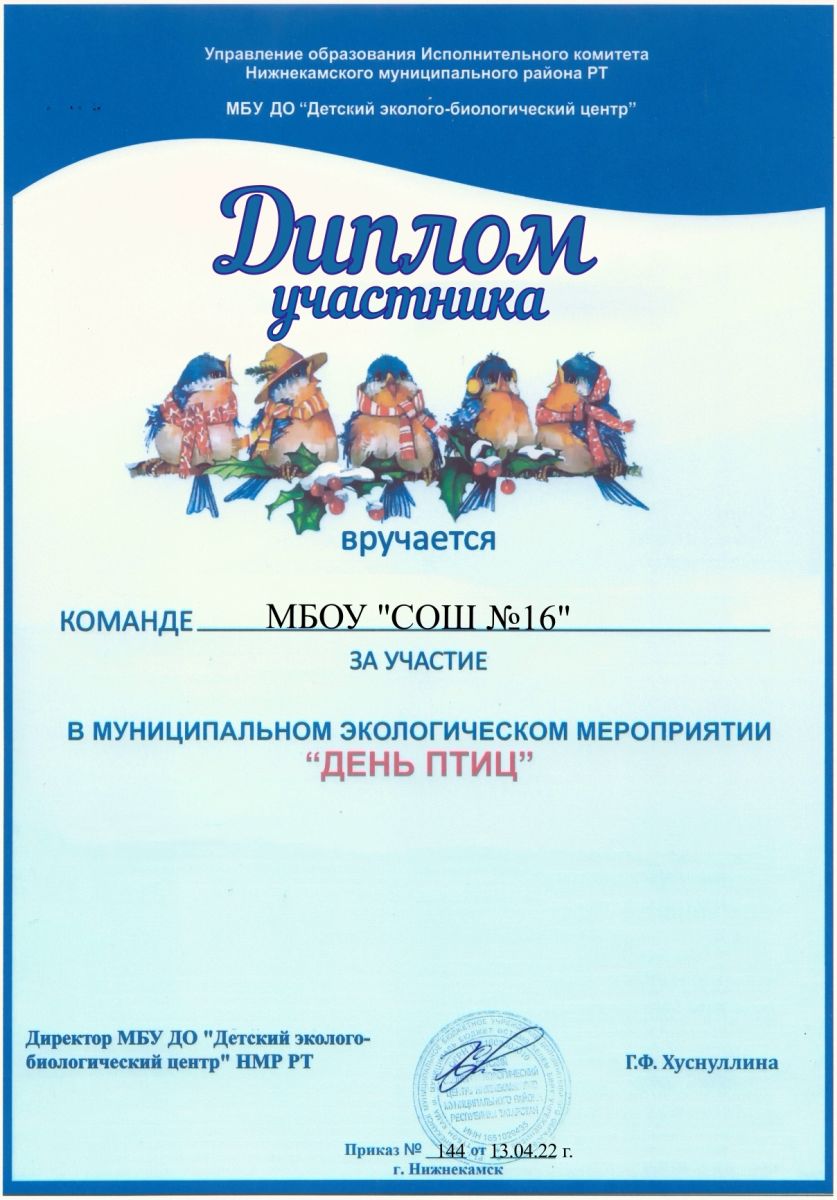 | Короткое название: | МБОУ "СОШ №16" НМР РТ |