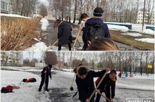 Учащиеся 8А класса принимают активное участие в акции "ЭКОЛОГИЧЕСКИЙ ДВУХМЕСЯЧНИК". Они помогают своим трудом, раскидывая снег во дворе школы, вступить весне в свои права.