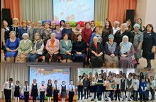 На праздничный концерт в школе, посвящённому празднованию Дня учителя, были приглашены ветераны педагогического труда. Всех учителей поздравили с праздником на концерте и за праздничным столом. -