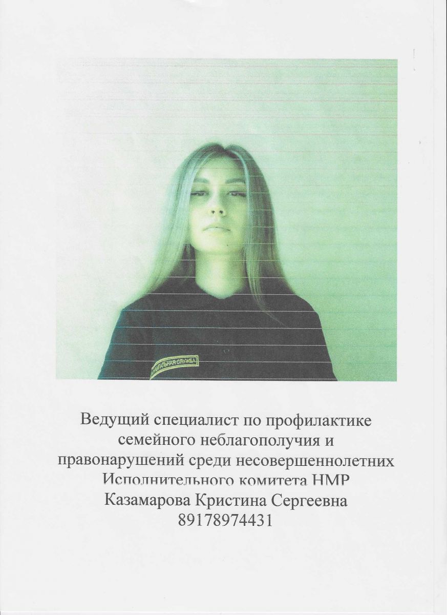 Ведущий специалист по профилактике семейного неблагополучия и правонарушений среди несовершеннолетних НМР РТ