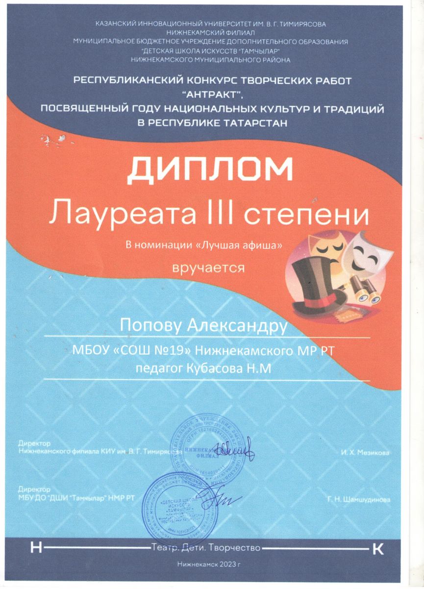 Диплом II степени, конкурс творческих работ «Антракт» (номинация «Лучшая афиша»), 2021 год;