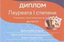 1 место в конкурсе "Антракт" в номинации "Эскиз театрального костюма". Поздравляем Алину, поздравляем театральный кружок "Левентик", поздравляем школу №2..
