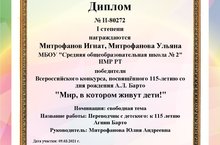 Всероссийский конкурс, посвященный 115-летию со дня рождения А.Л. Барто "Мир, в котором живут дети!" 11.03.2021