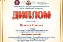 Республиканский конкурс творческих работ среди воспитанников, учащихся и педагогических работников образовательных учреждений , посвященных 75-ой годовщине Победы в Великой Отечественной войне 30.05.2020