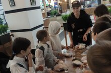Учащиеся 4 класс В вместе с родителями побывали в ТРК Сити Молл в кафе "Авокадо" на мастер-классе по приготовлению пиццы.Опытный пиццамейкер рассказал об истории этого итальянского блюда, поделился секретами его приготовления. Пока пекли пиццу, учащиеся смастерили весёлого снеговика. В конце ребята попробовали своё творение, запивая его свежезаваренным душистым чаем. Получилось очень вкусно и познавательно