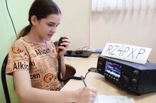Месячник гражданско-патриотической работы. За радиостанцией ученица нашей школы Альбина Бикбаева.Участие в дипломной программе "Ленинградская блокада 80".