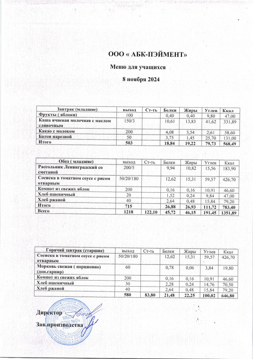 Меню на 08.11.2025