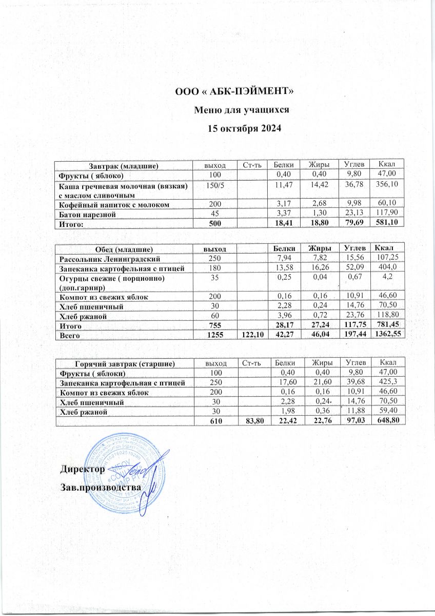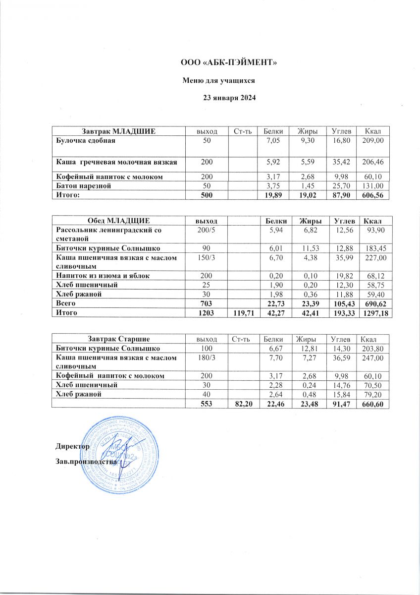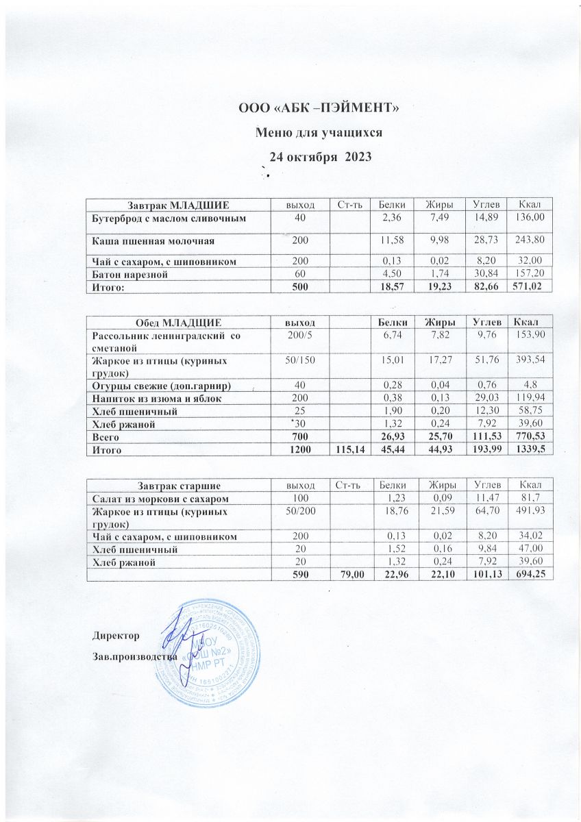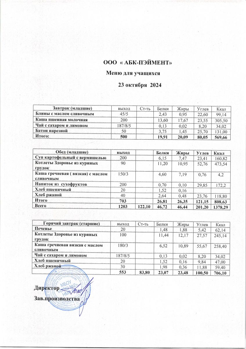 МЕНЮ на 24.10.2023