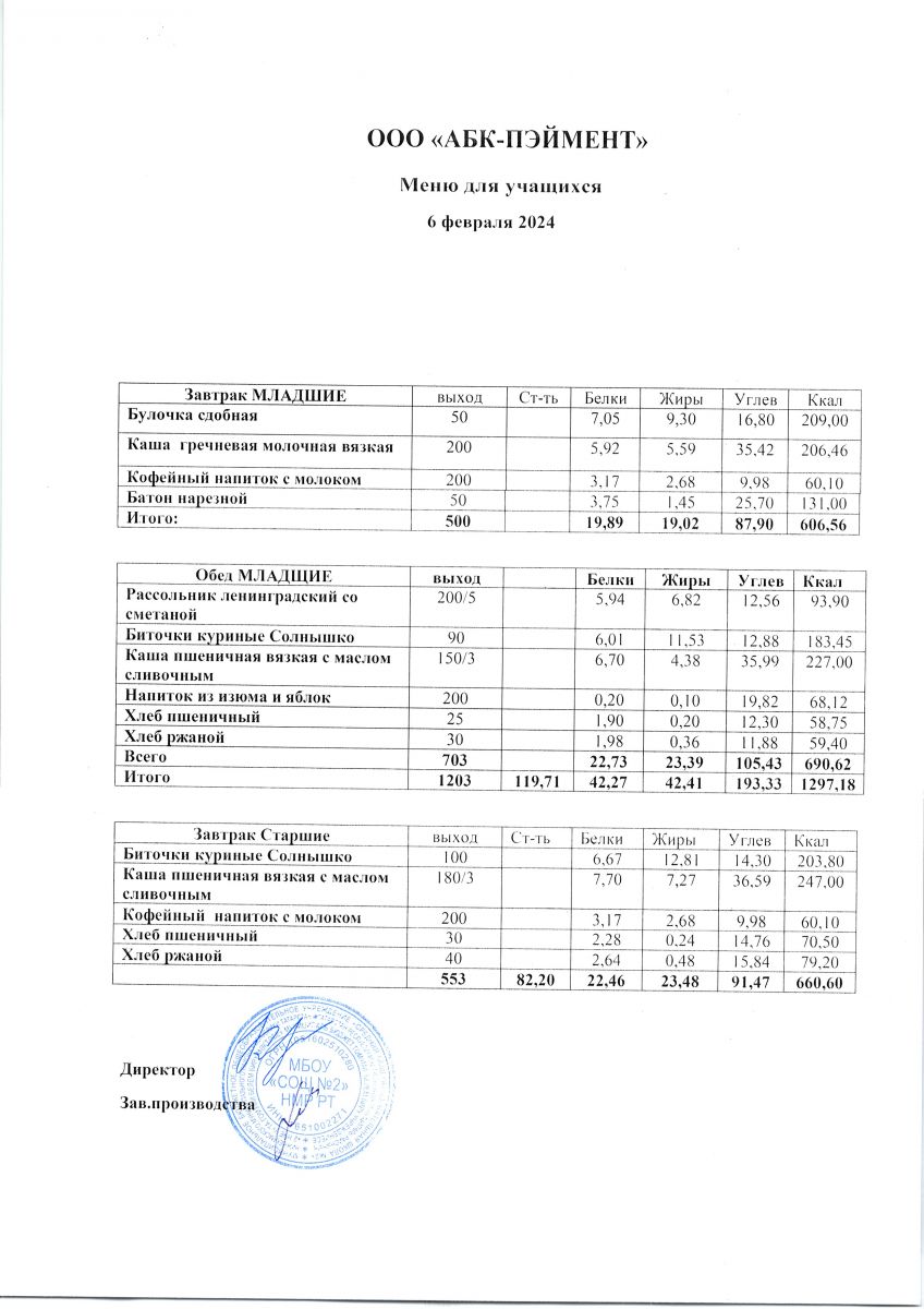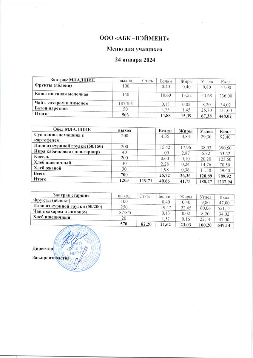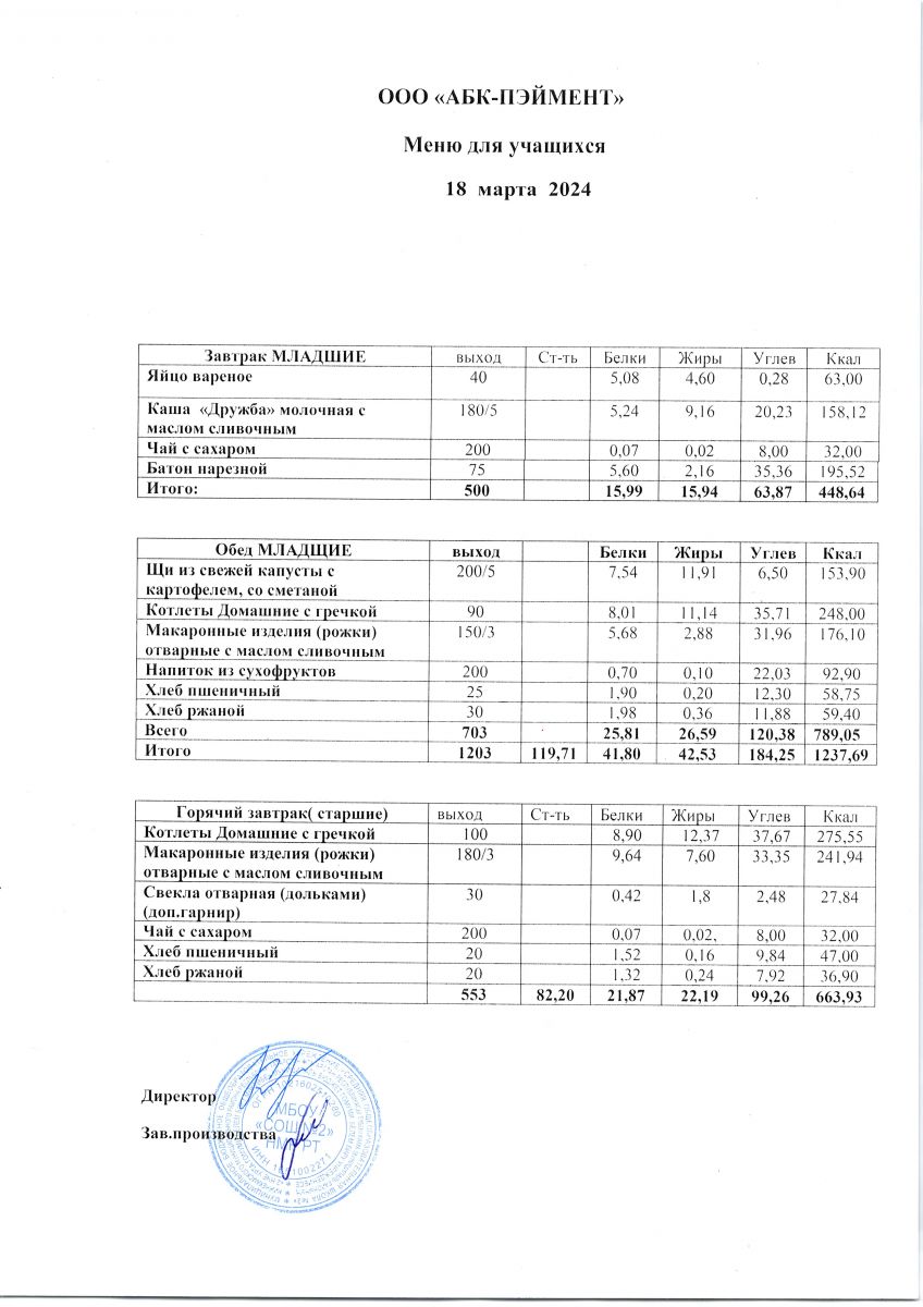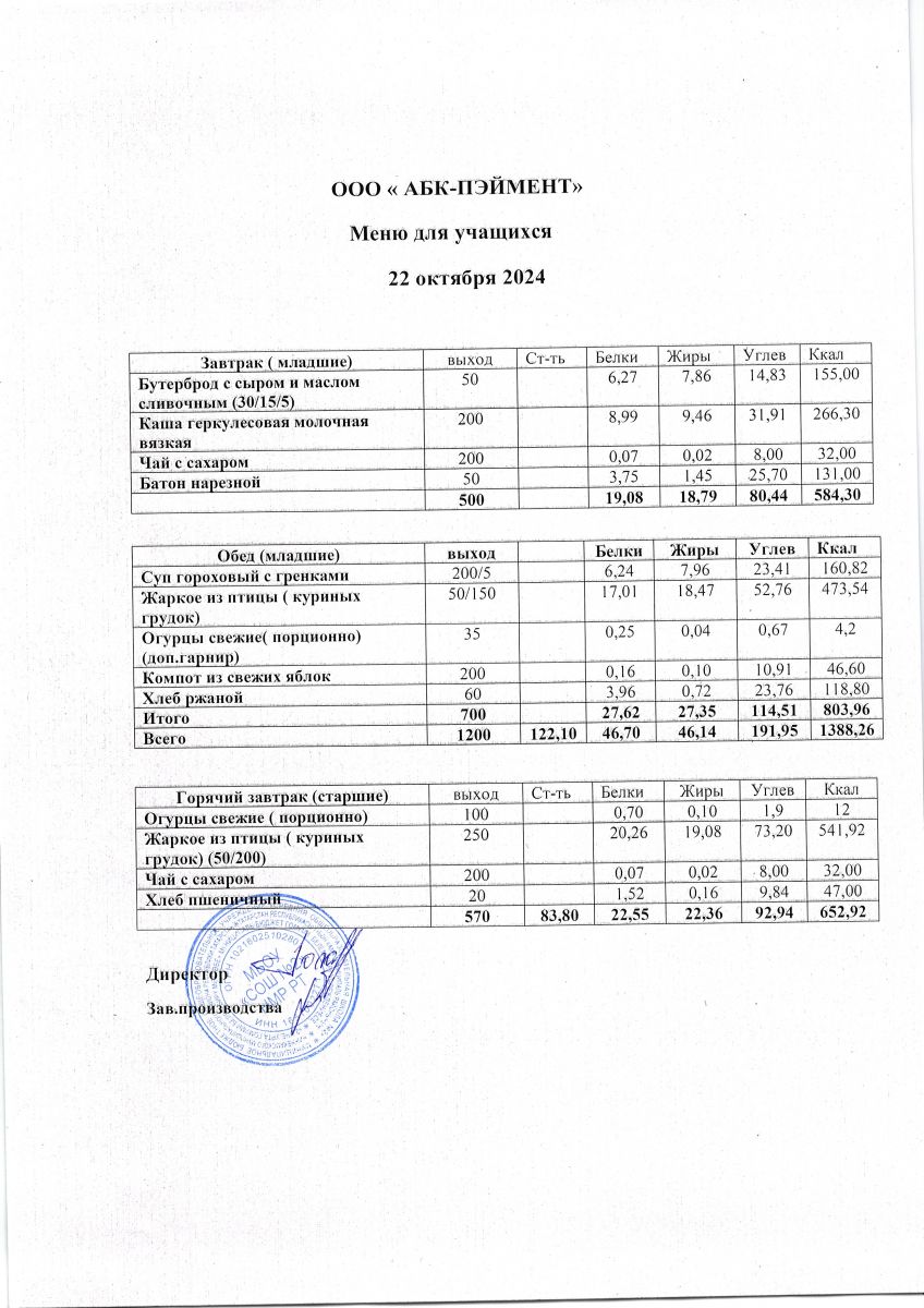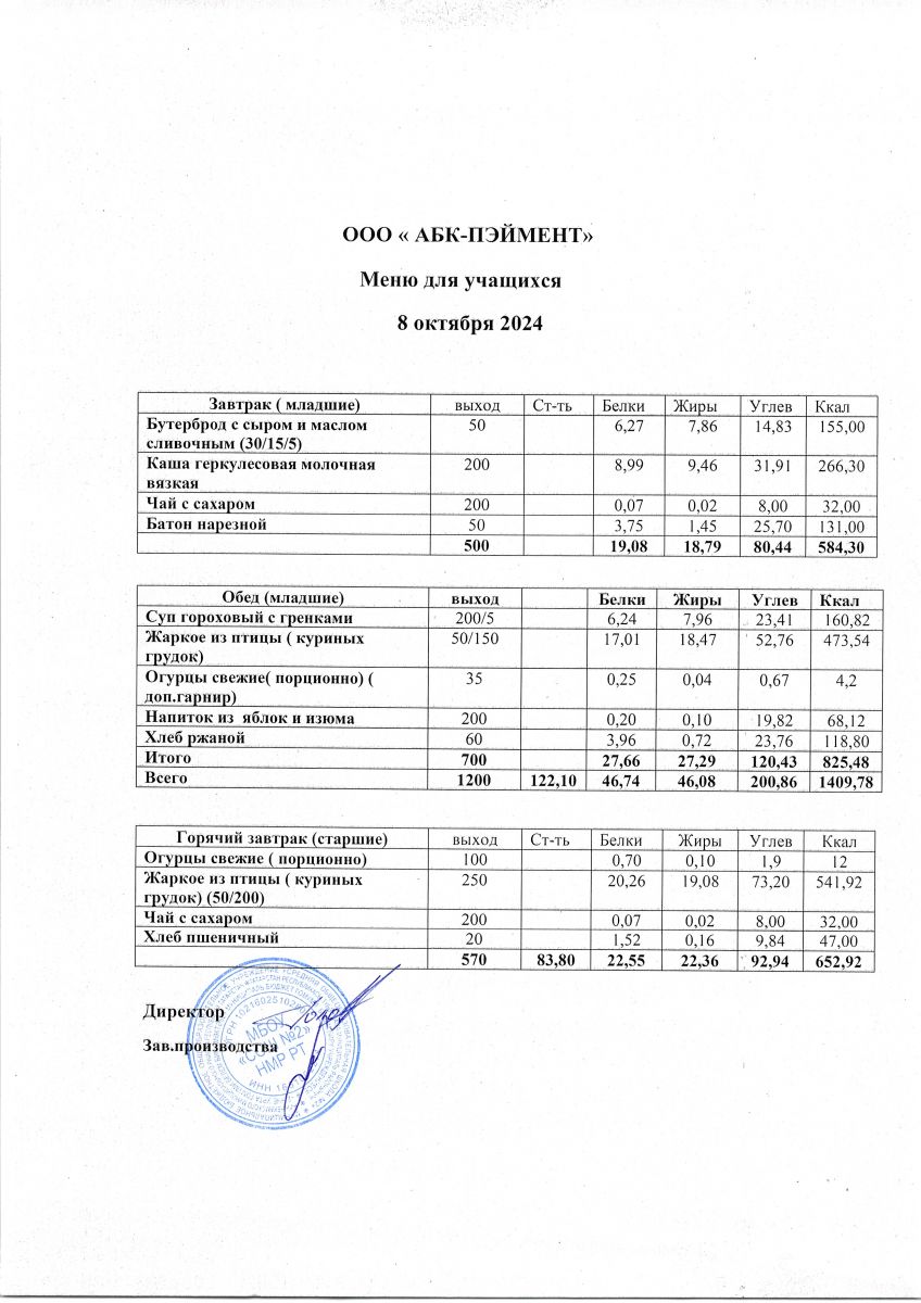 МЕНЮ на 24.10.2023
