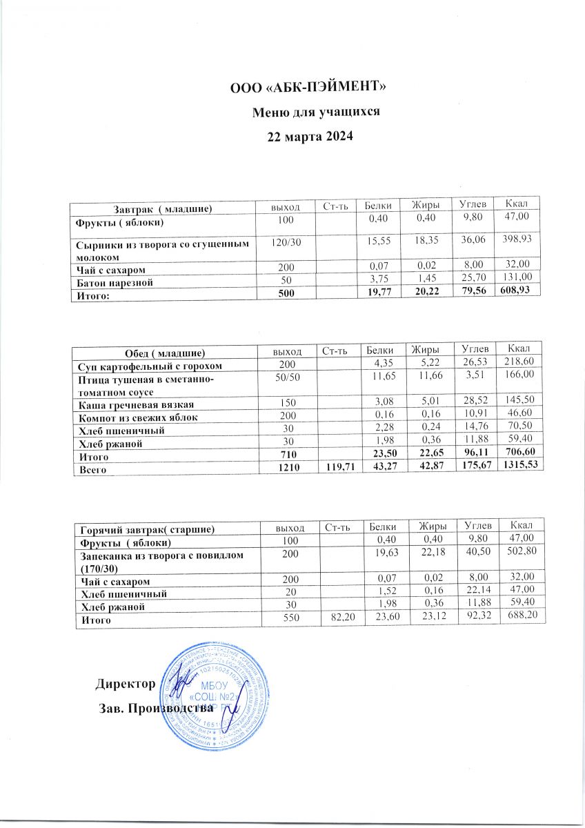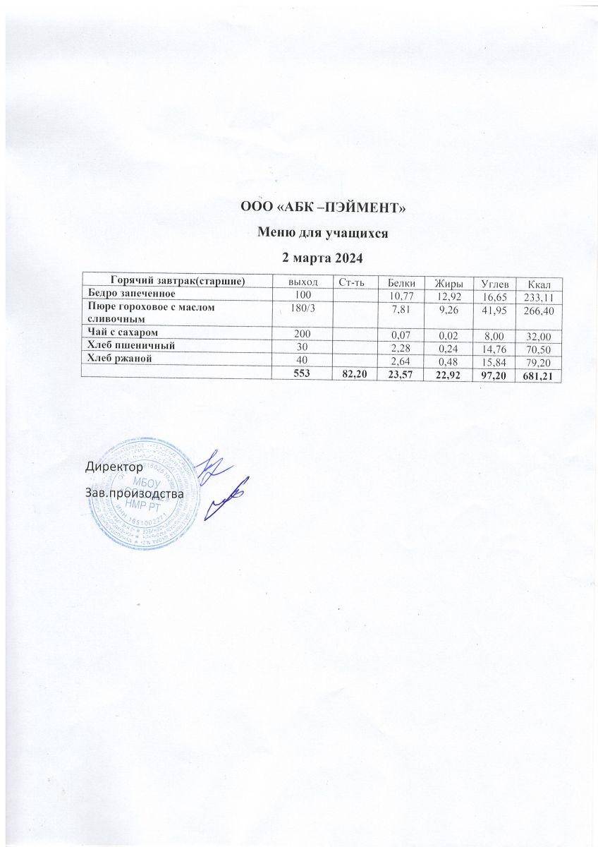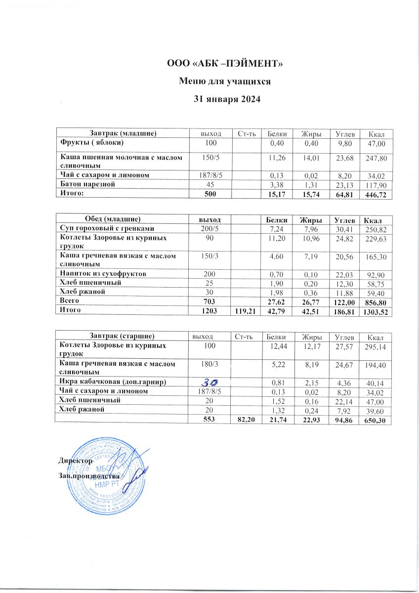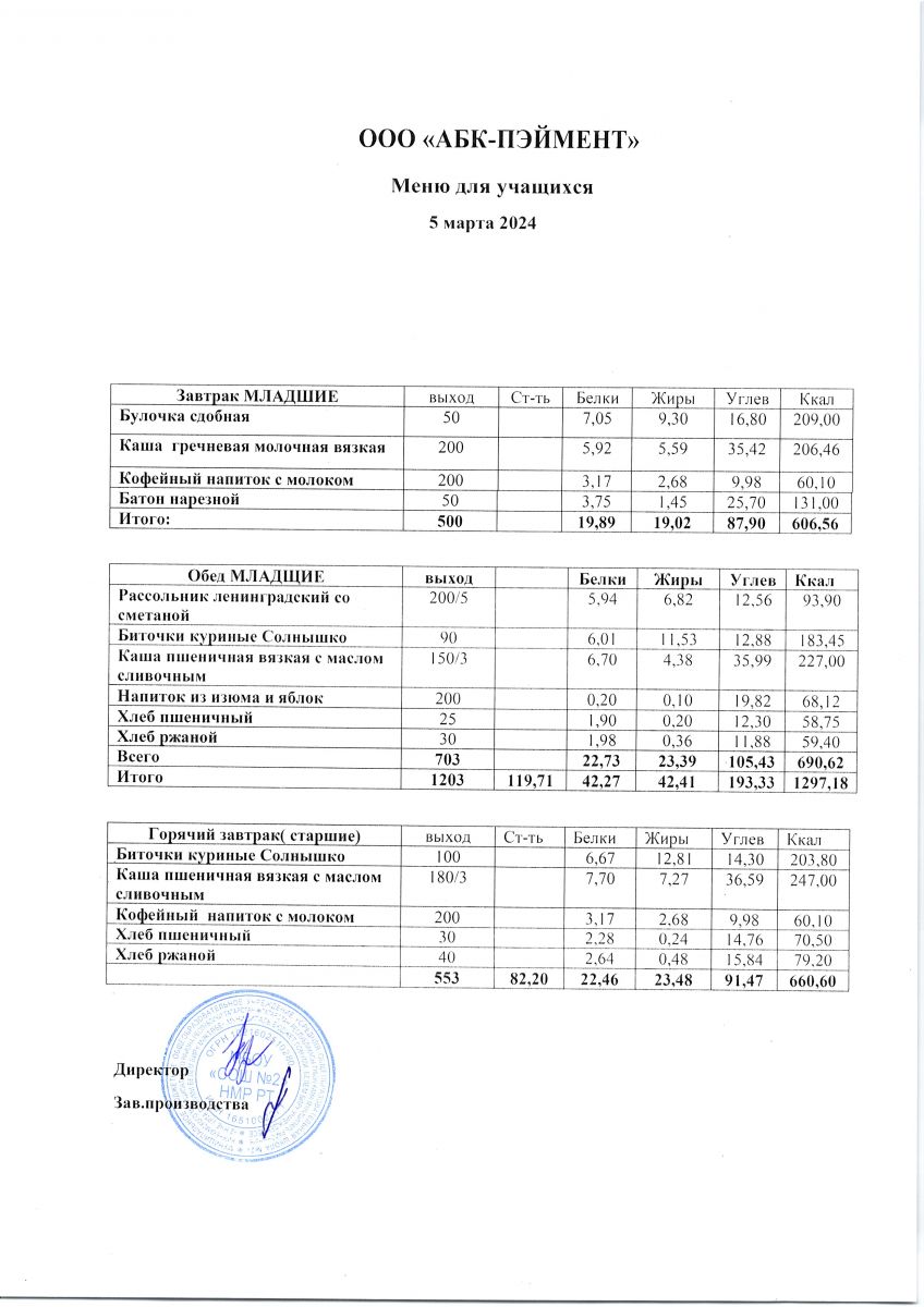 МЕНЮ на 24.10.2023