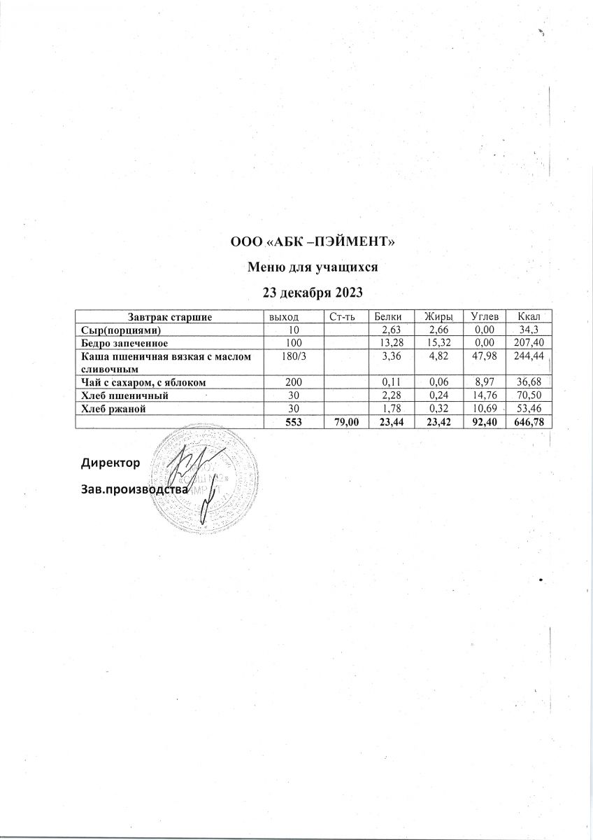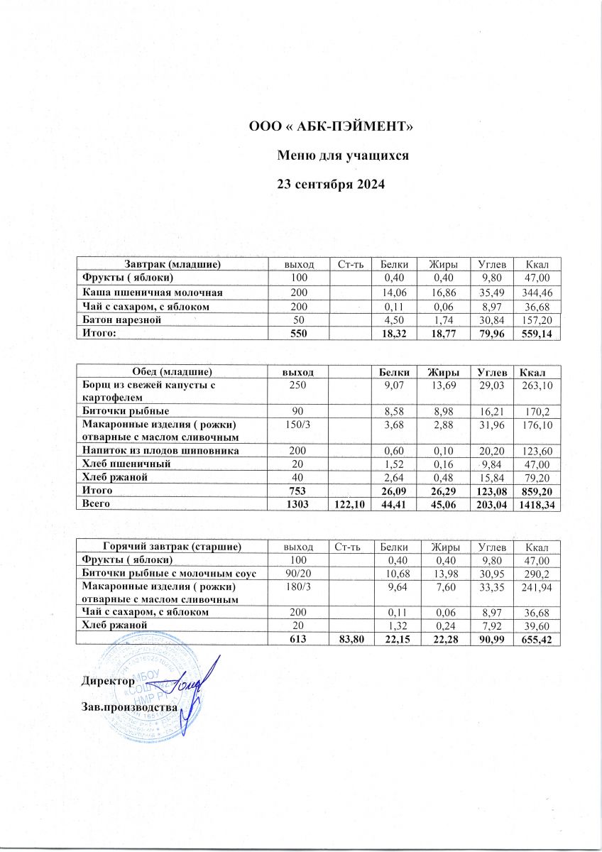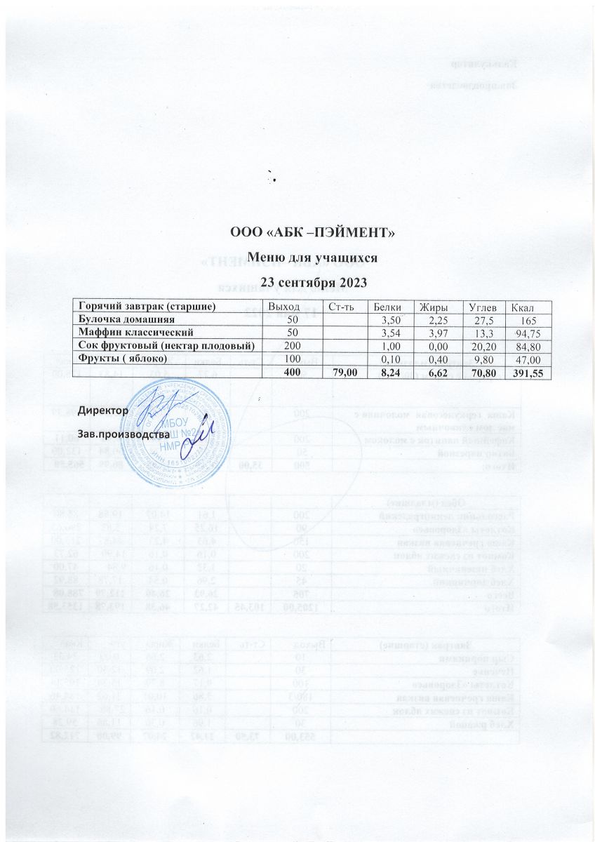 МЕНЮ на 23.09.2023