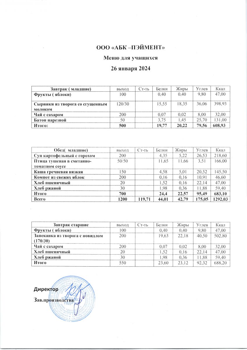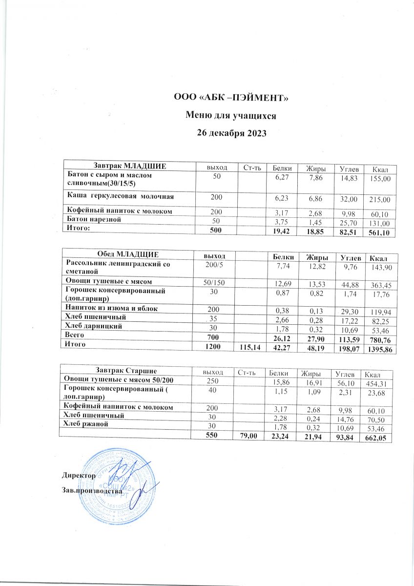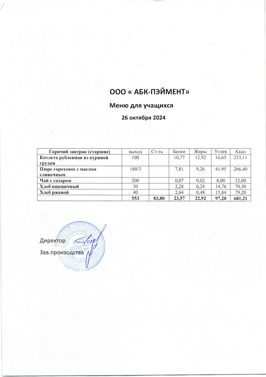 МЕНЮ на 26.10.2023