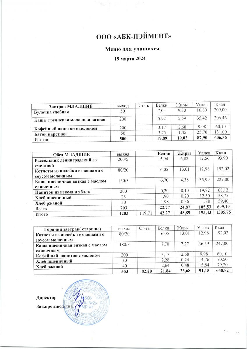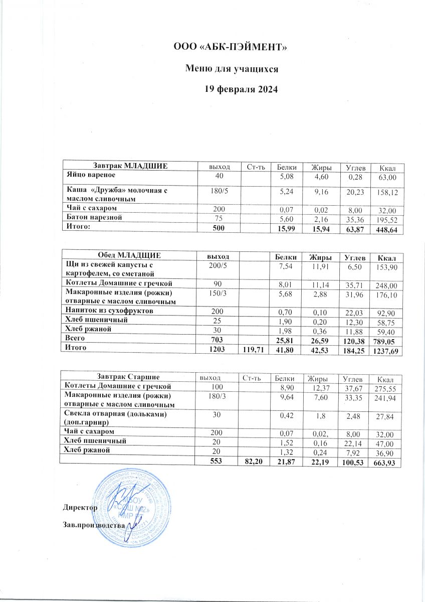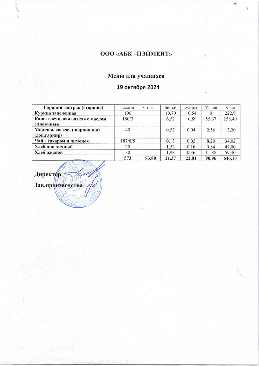 МЕНЮ на 19.10.2023