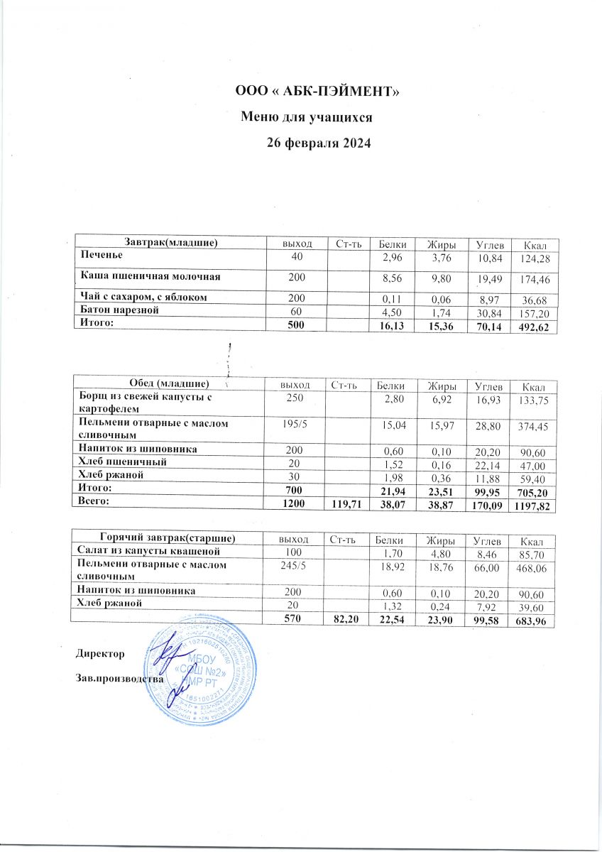 Меню на 26.04.2025