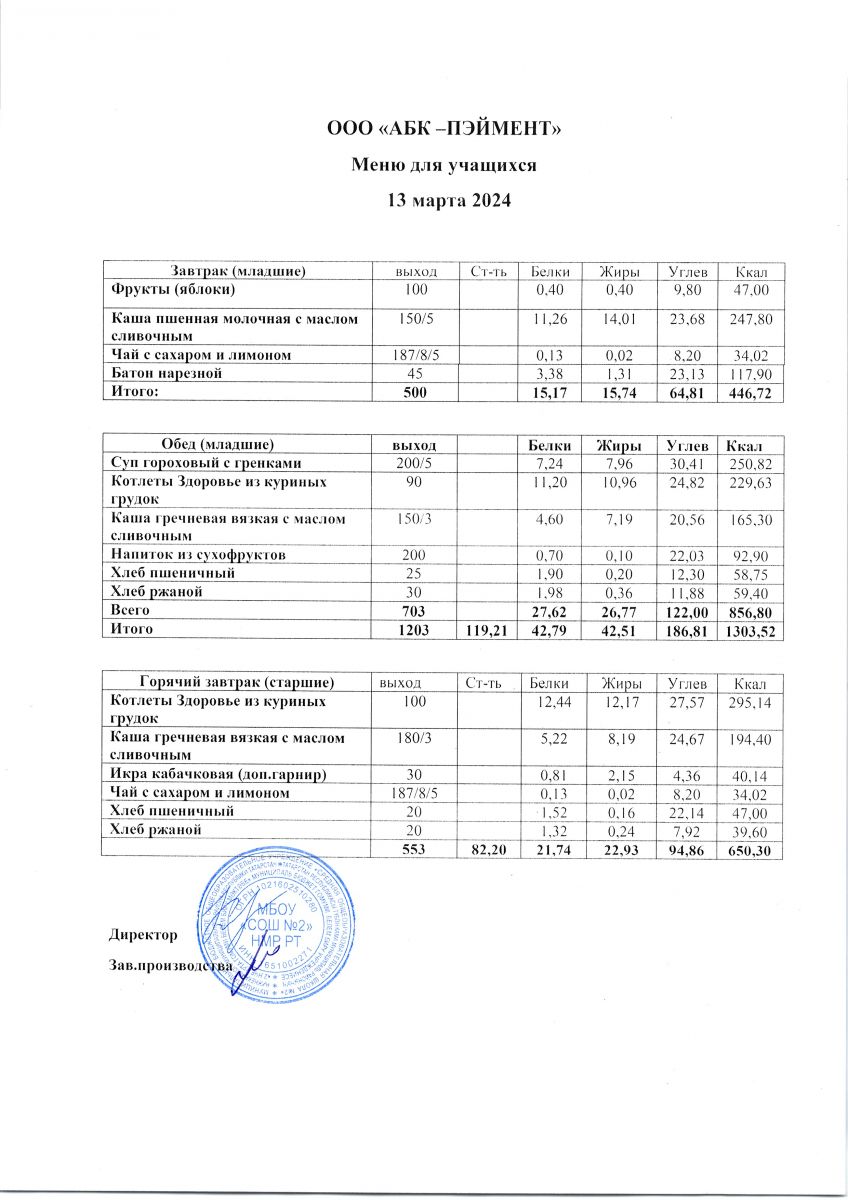 МЕНЮ на 13.10.2023