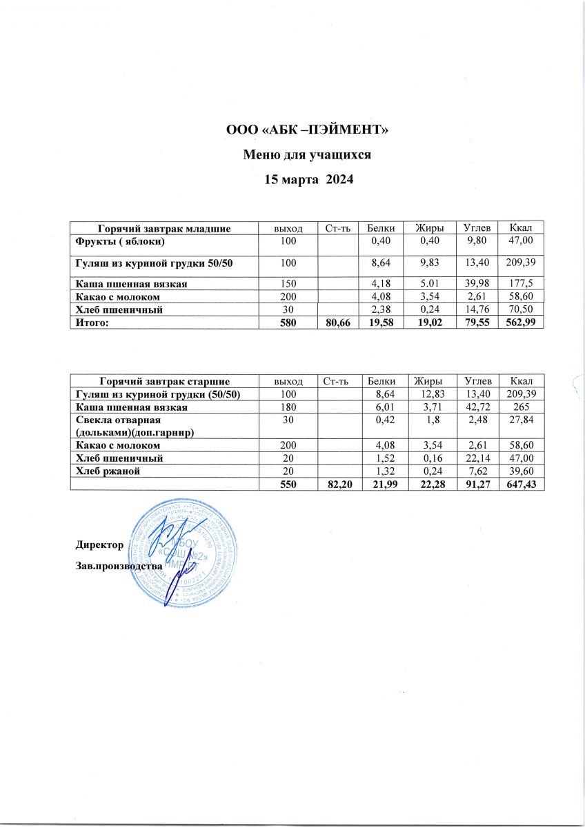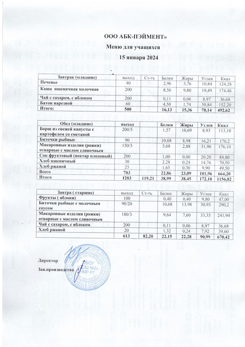МЕНЮ на 15.11.2023