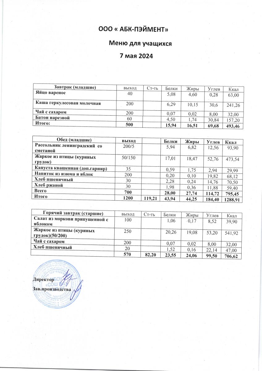 Меню на 07.05.2025