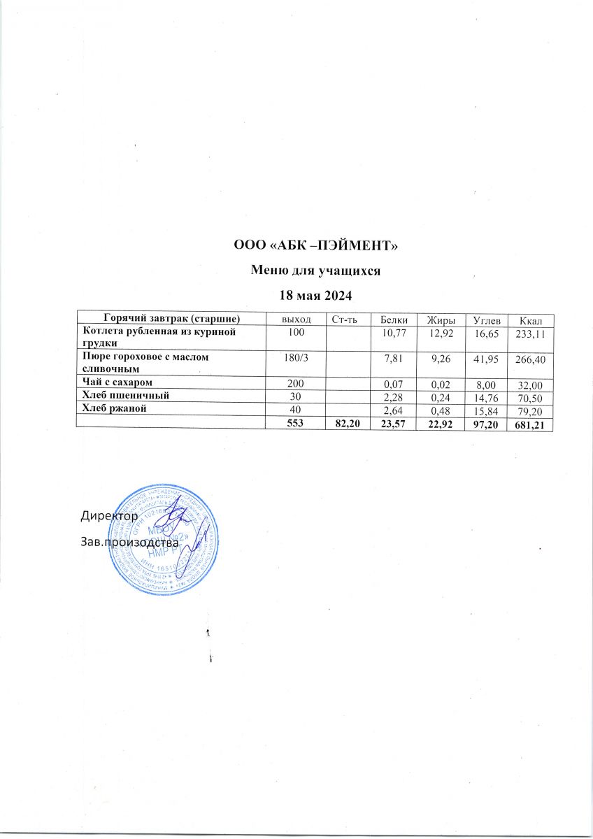Меню на 17.05.2025