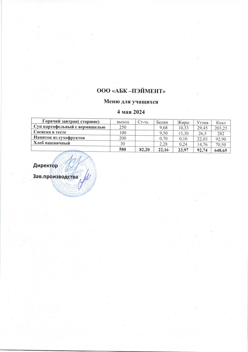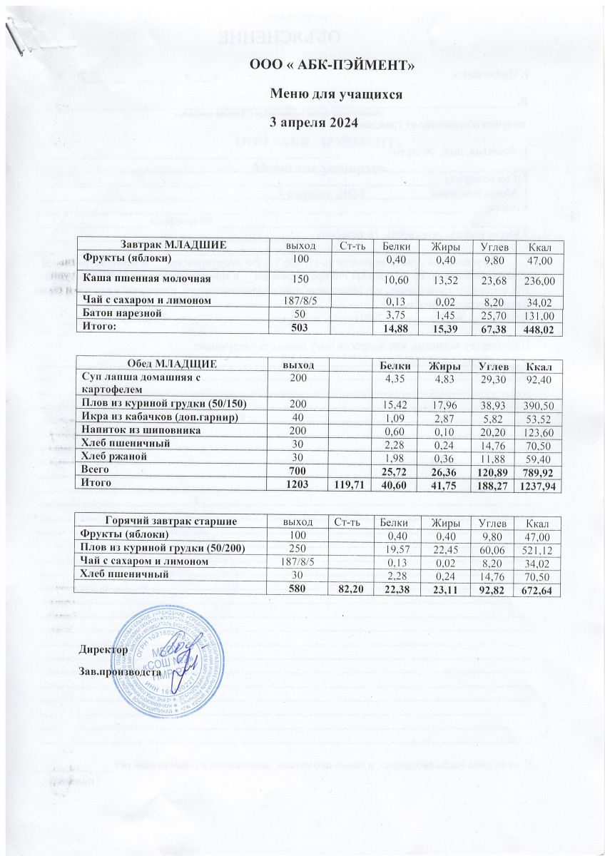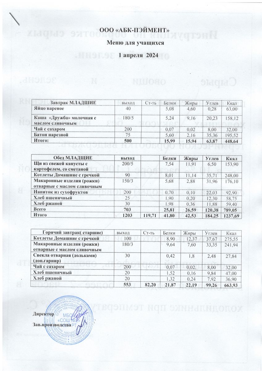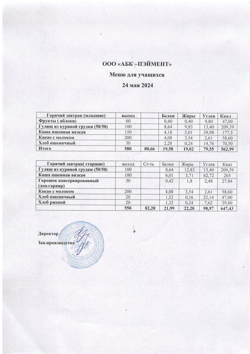Меню на 24.04.2025
