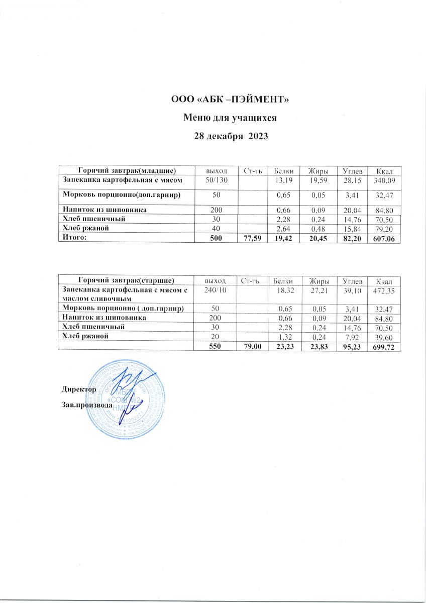 МЕНЮ на 28.09.2023