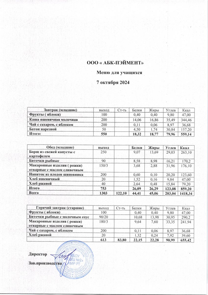 Меню на 07.10.2025