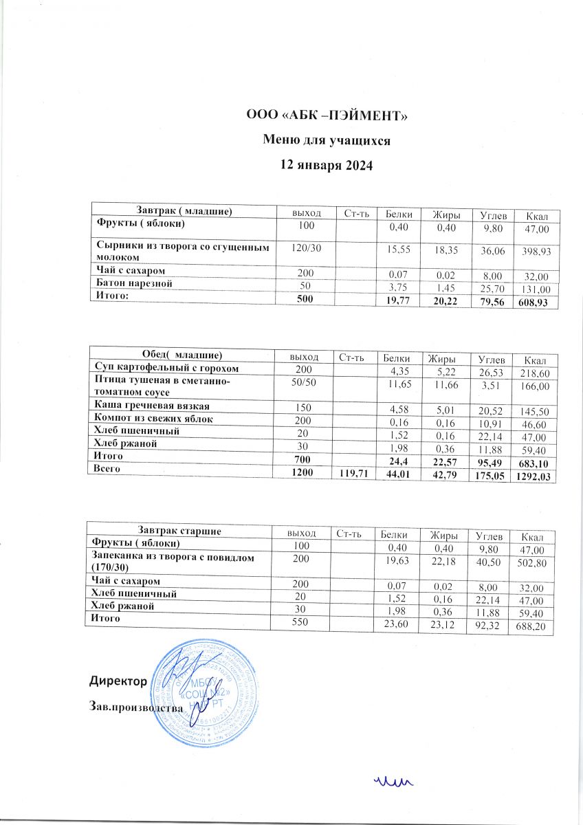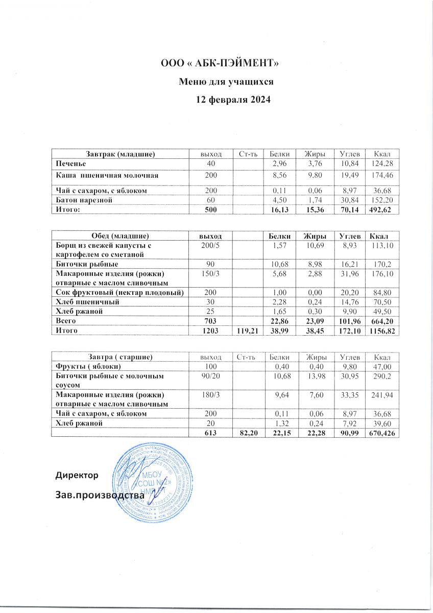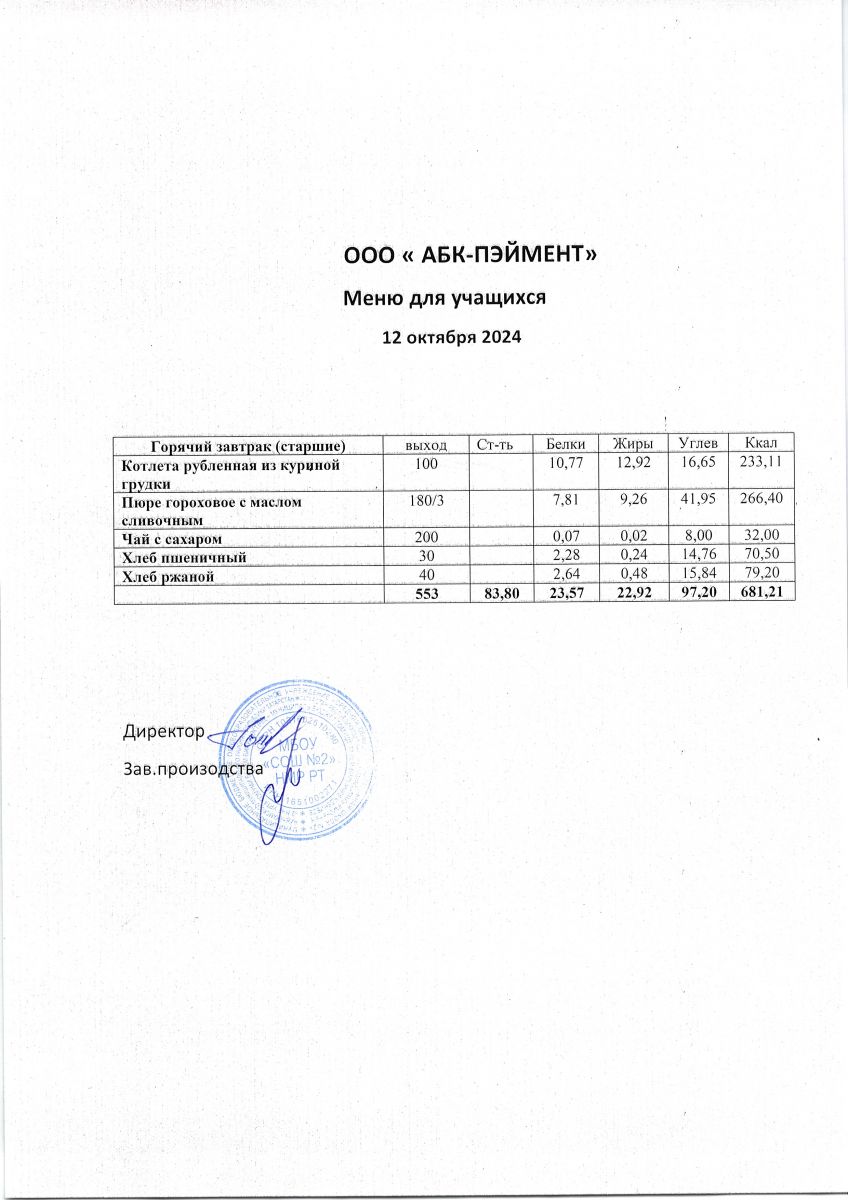 МЕНЮ на 12.10.2023