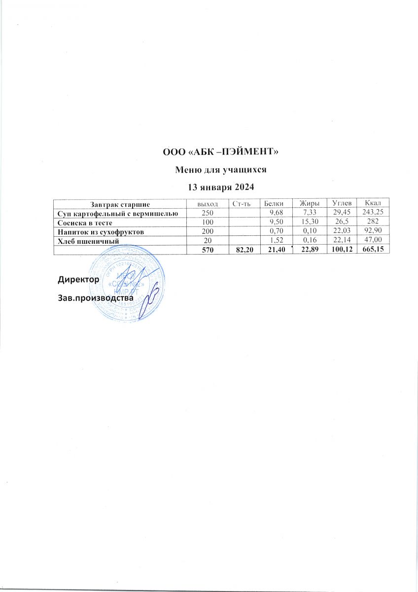 МЕНЮ на 13.11.2023