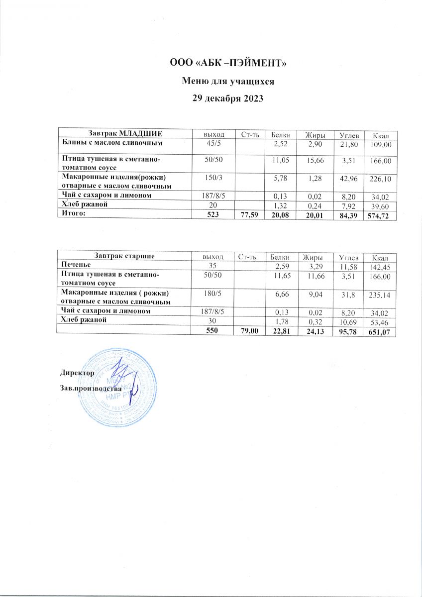 Меню на 29.11.2025