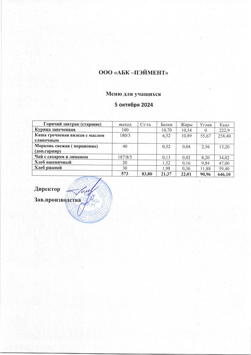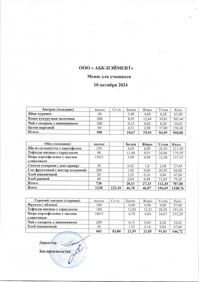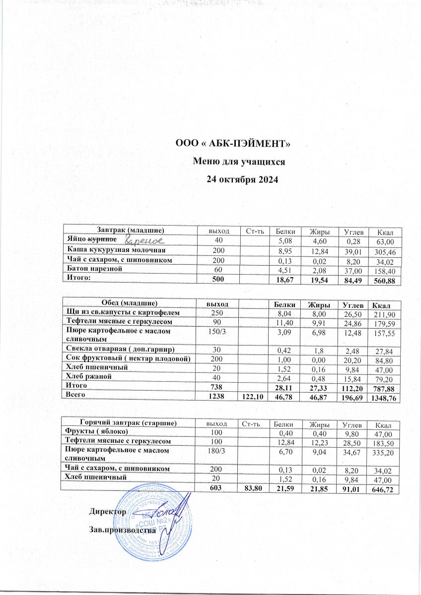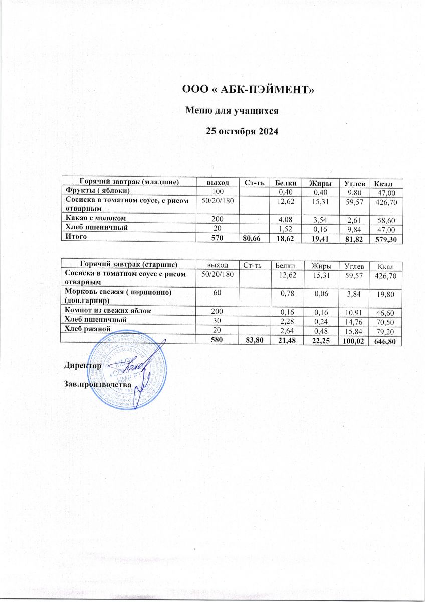 Меню на 24.10.2025