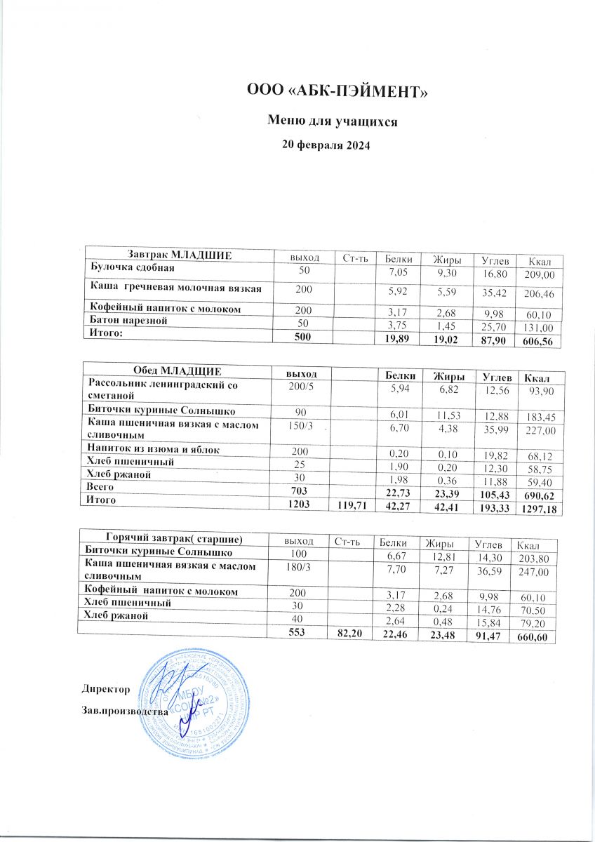МЕНЮ на 20.11.2023
