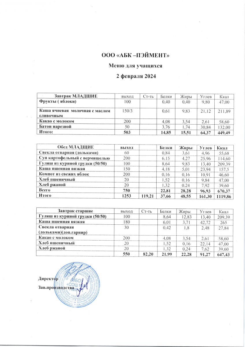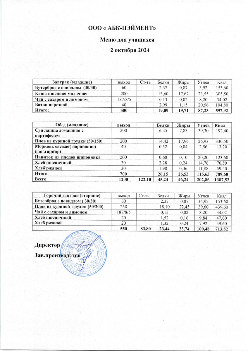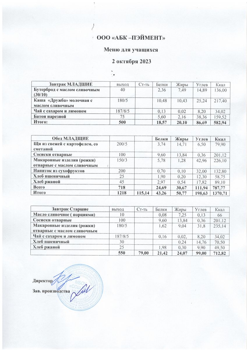 МЕНЮ на 02.10.2023