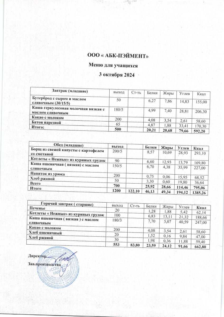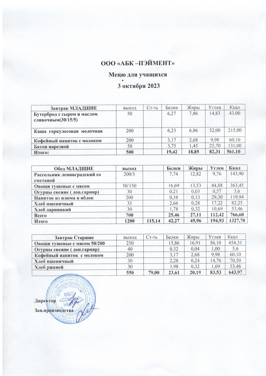 МЕНЮ на 03.10.2023