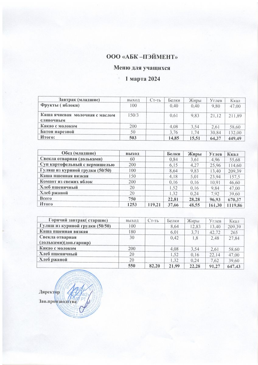 Меню на 24.11.2025