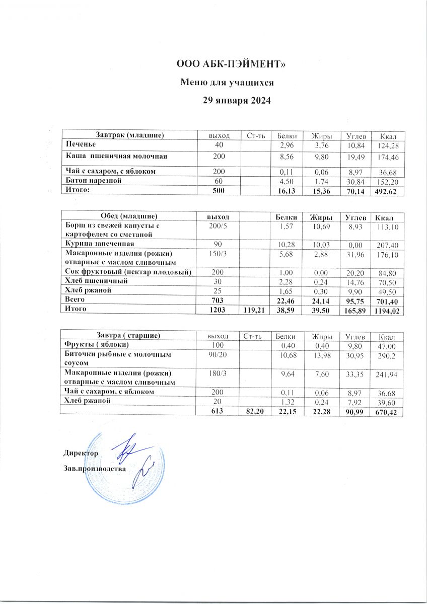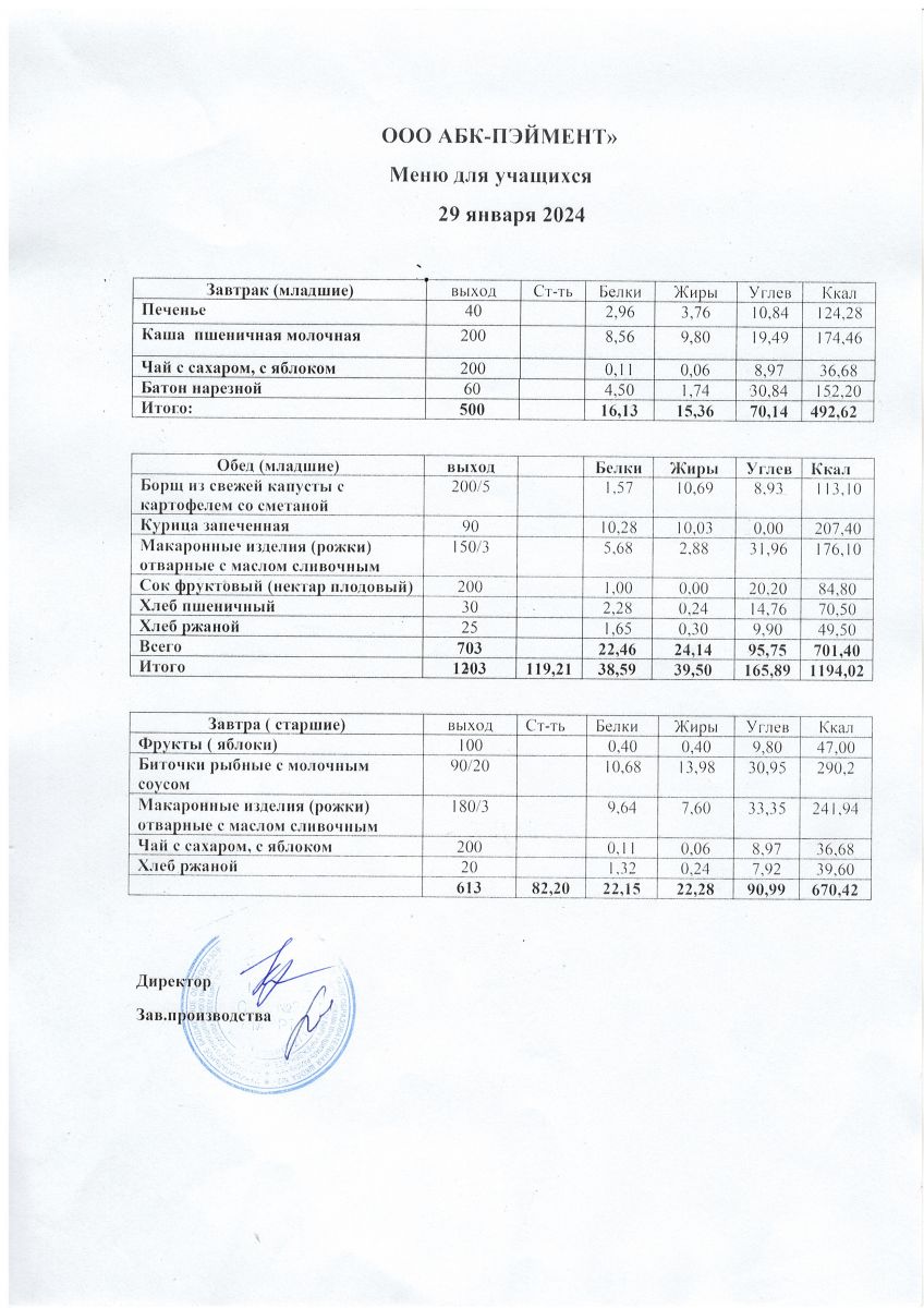 Меню на 29.04.2025