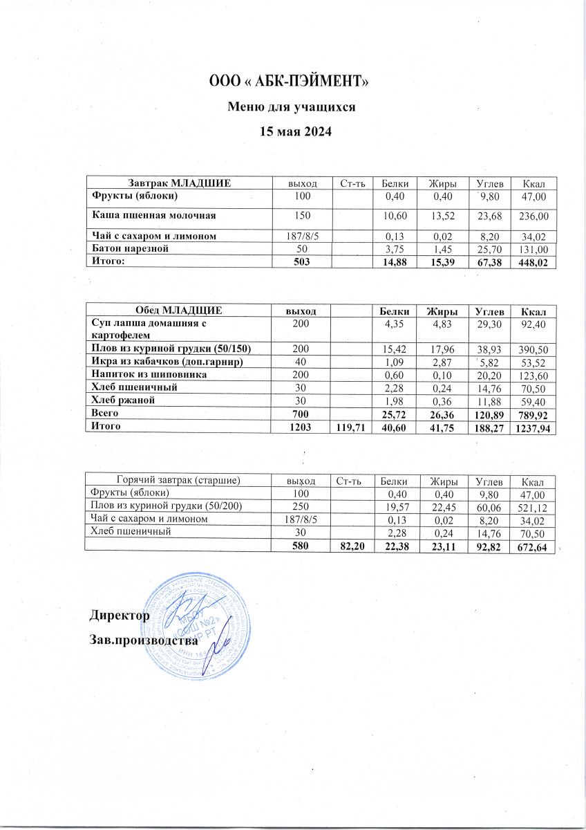 Меню на 15.05.2025