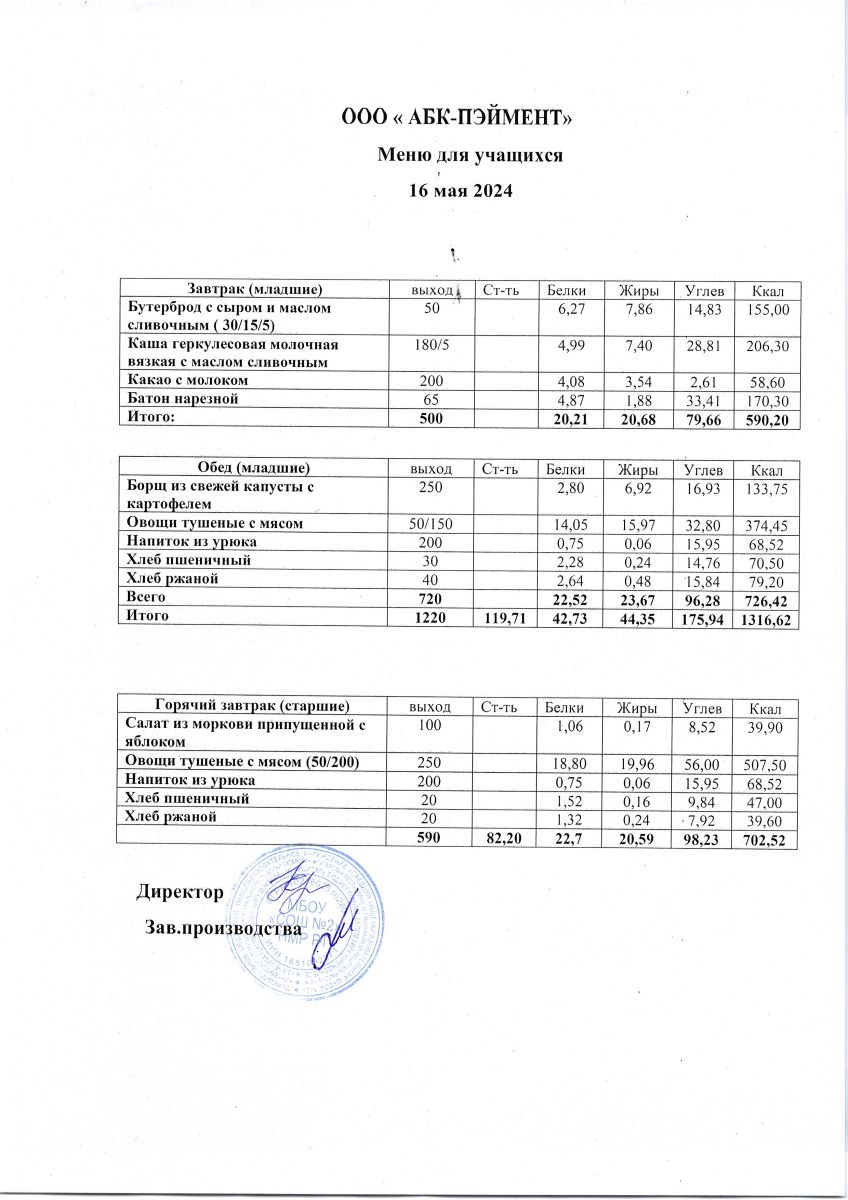 Меню на 16.05.2025