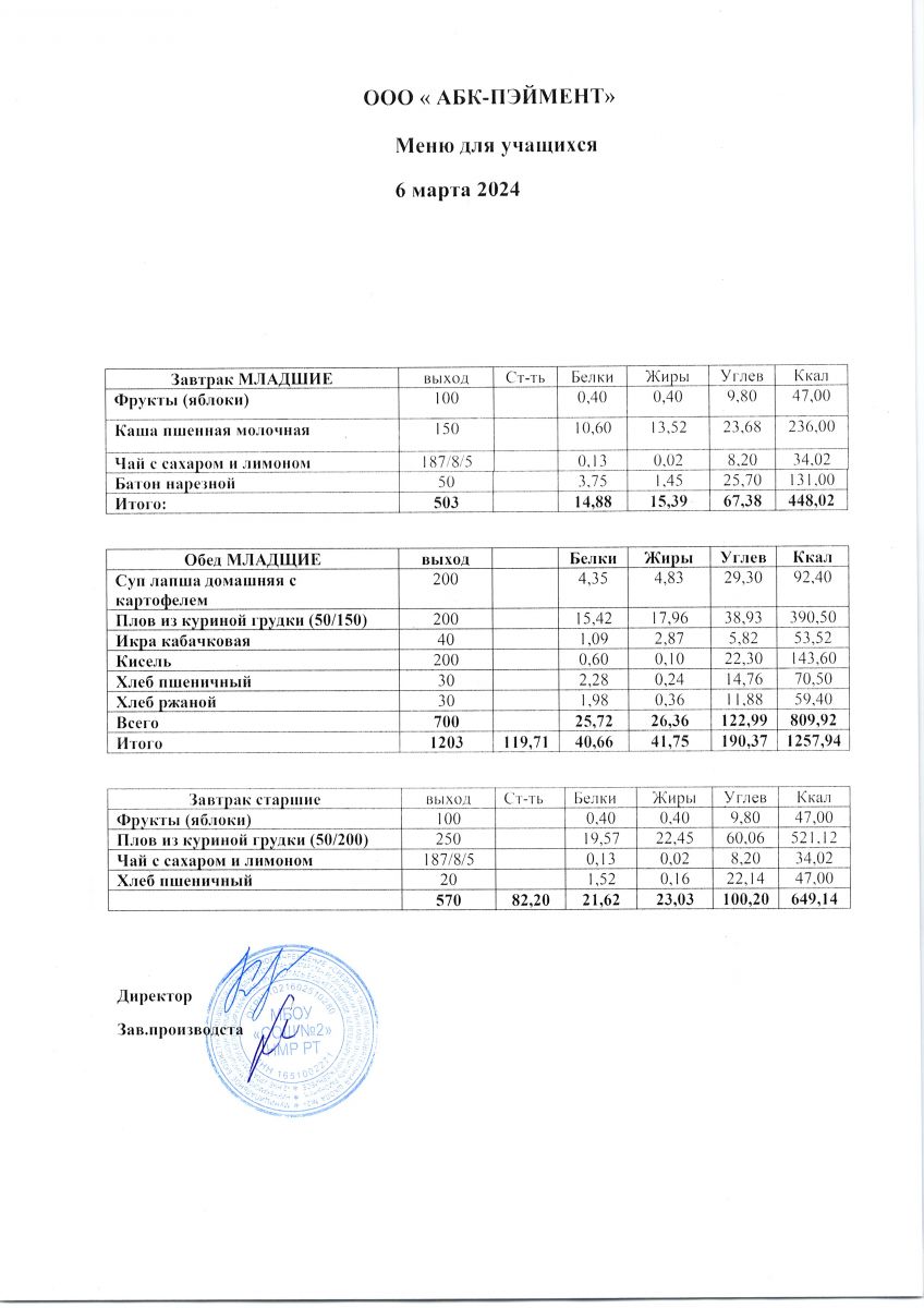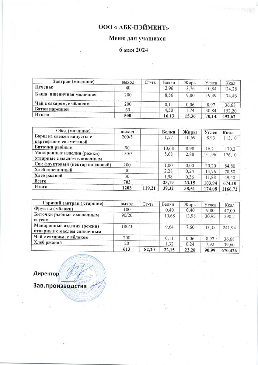 Меню на 06.05.2025