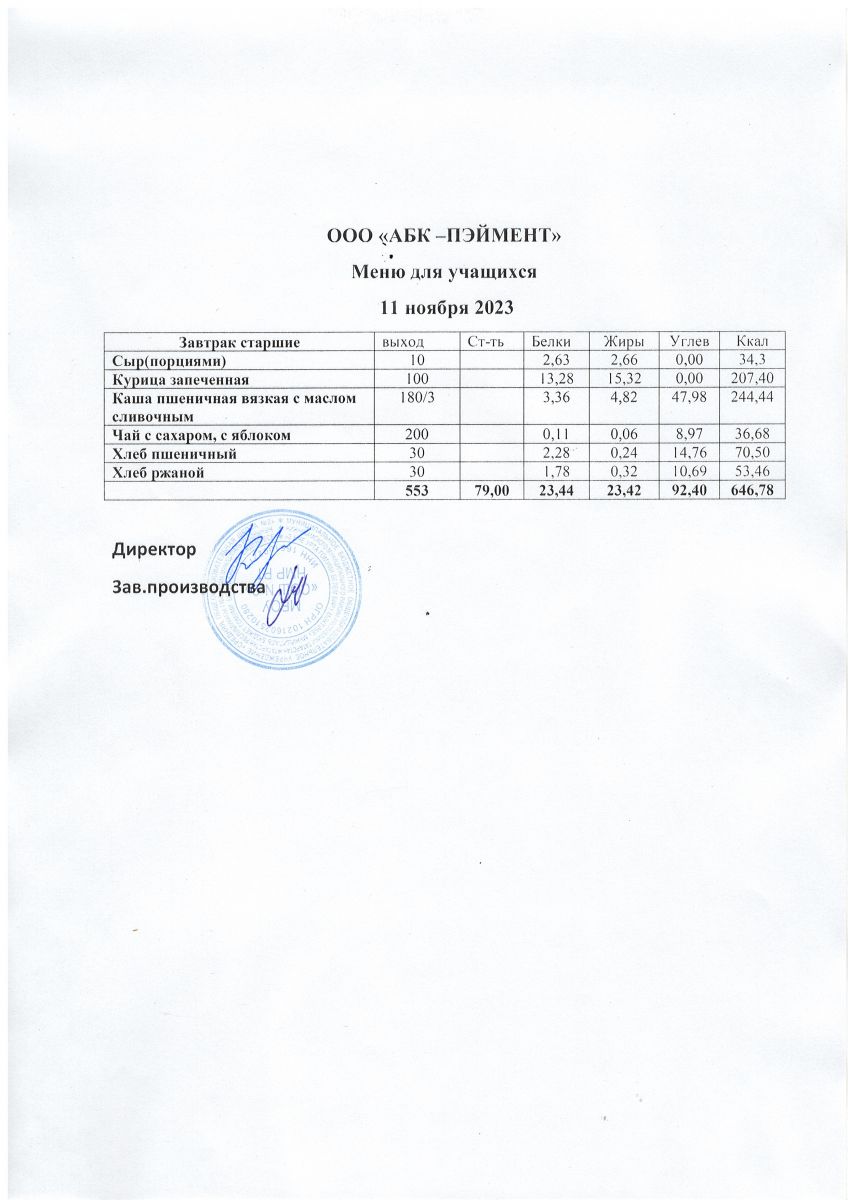 МЕНЮ на 11.11.2023