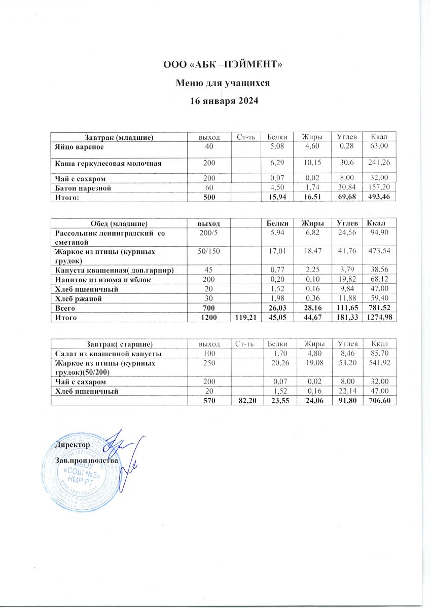 МЕНЮ на 16.11.2023