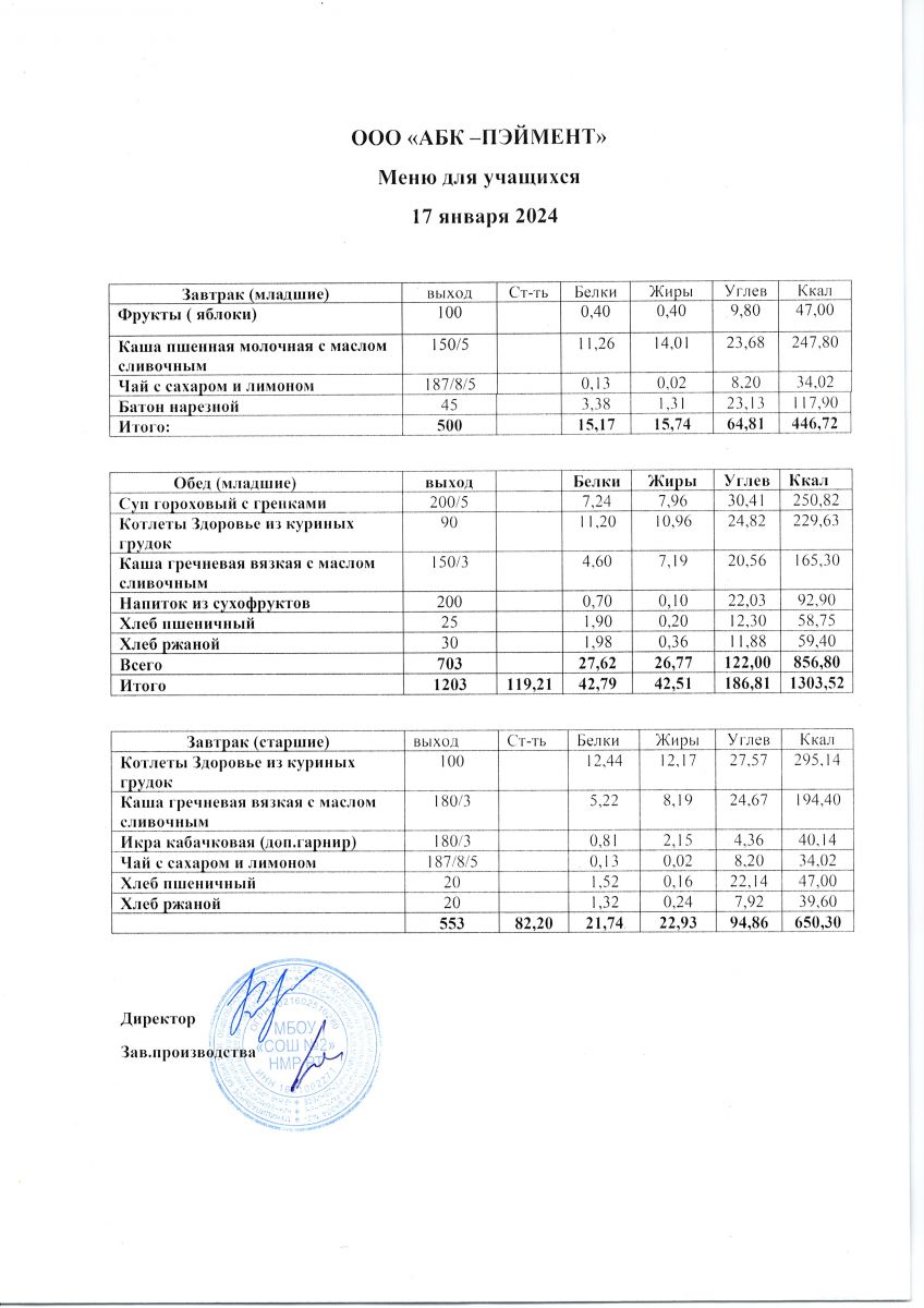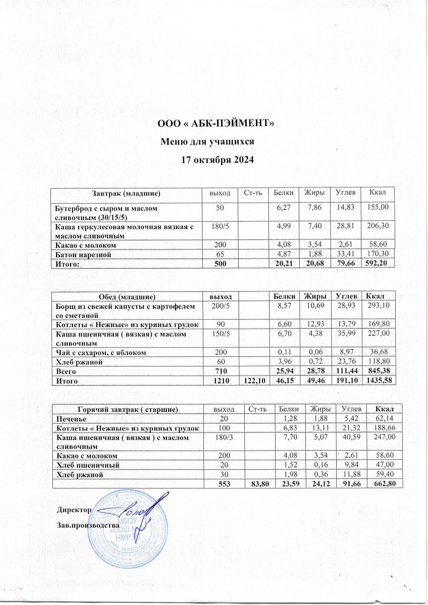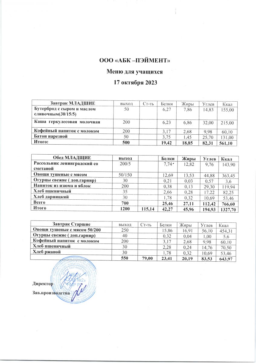 МЕНЮ на 17.10.2023