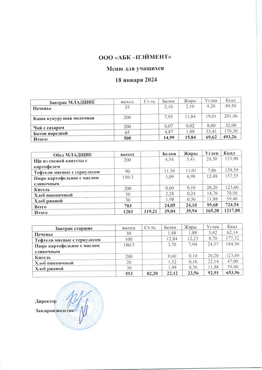 МЕНЮ на 18.10.2023
