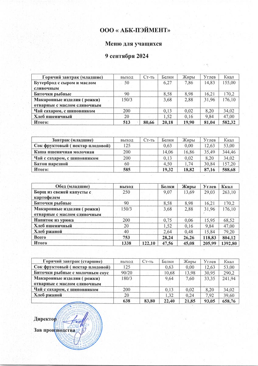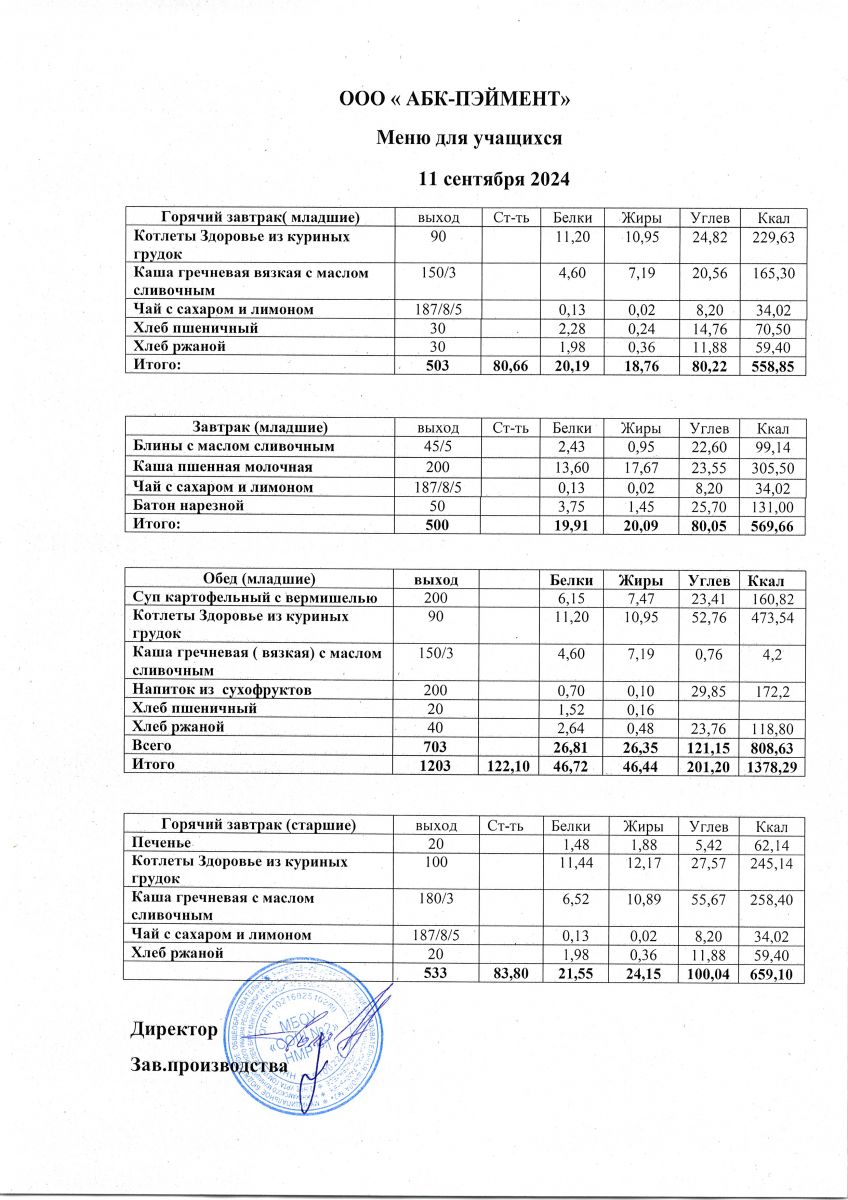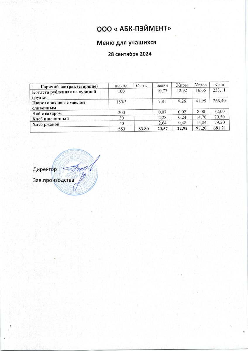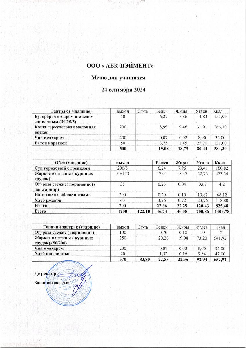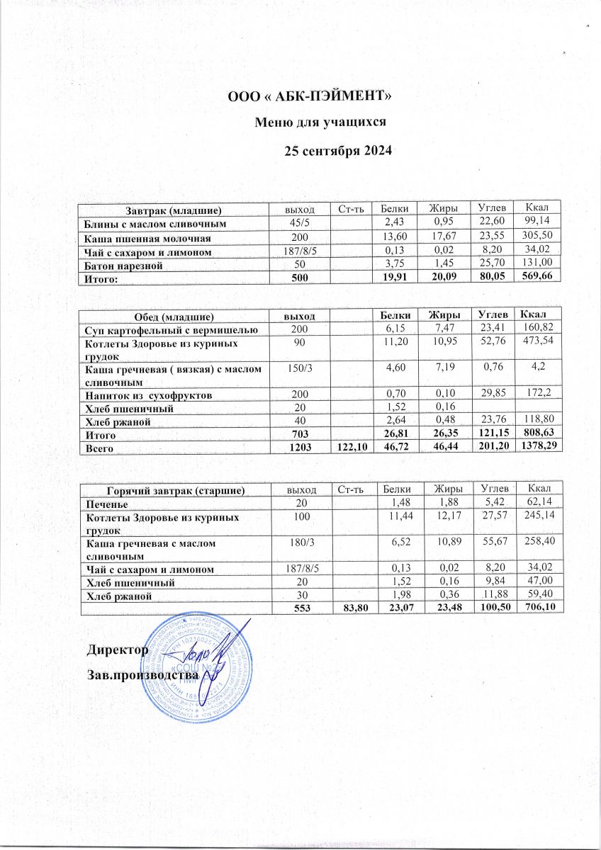 Меню на 24.09.2025