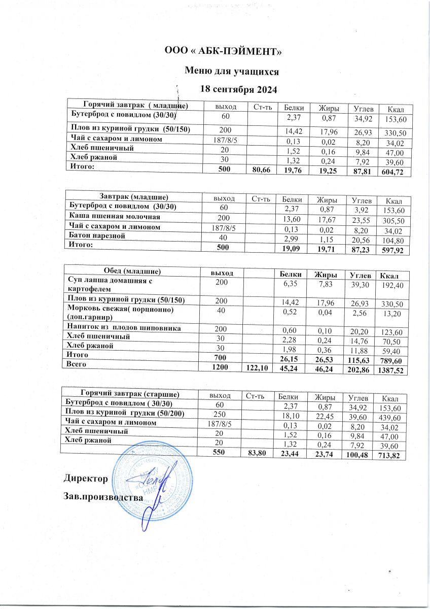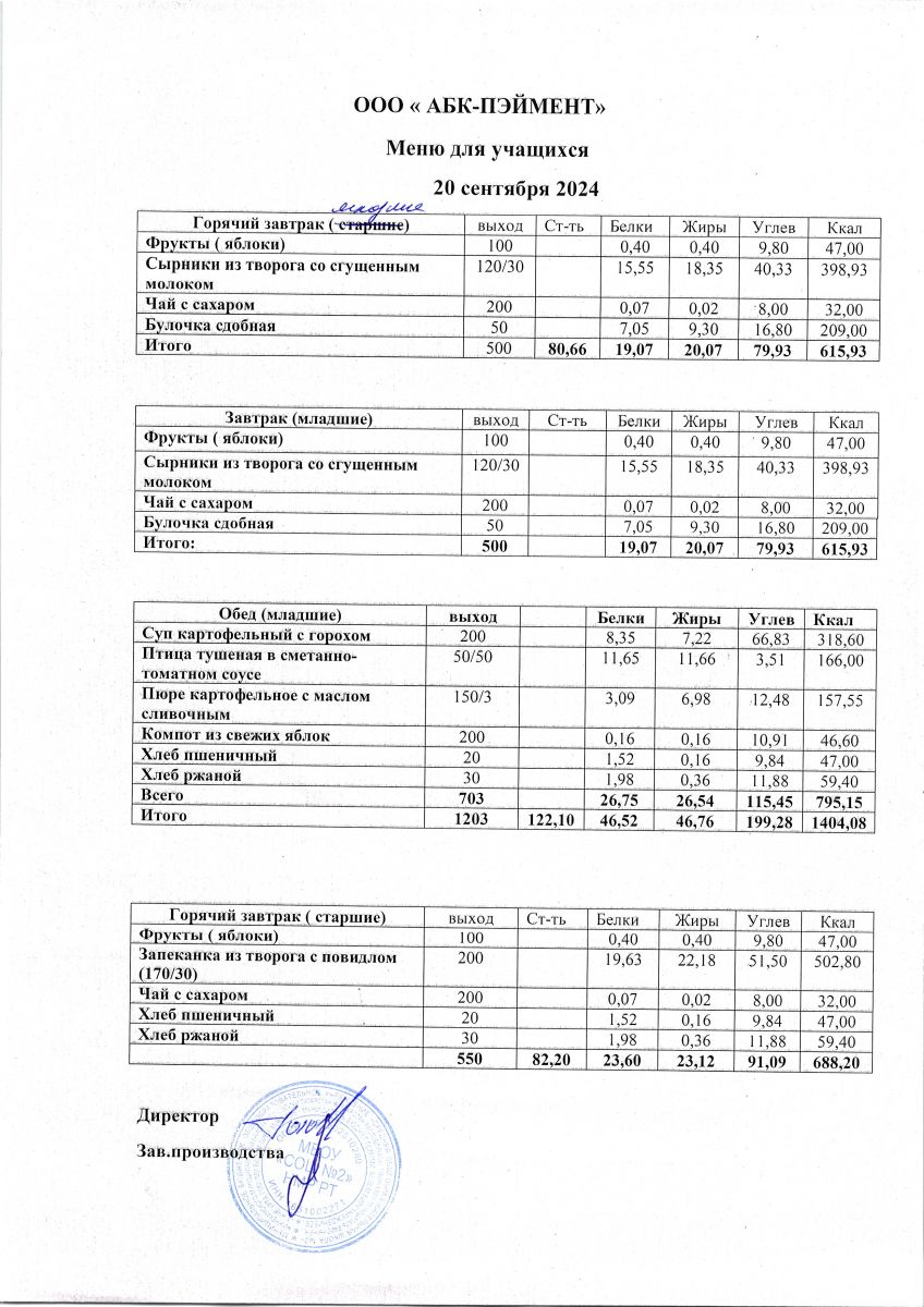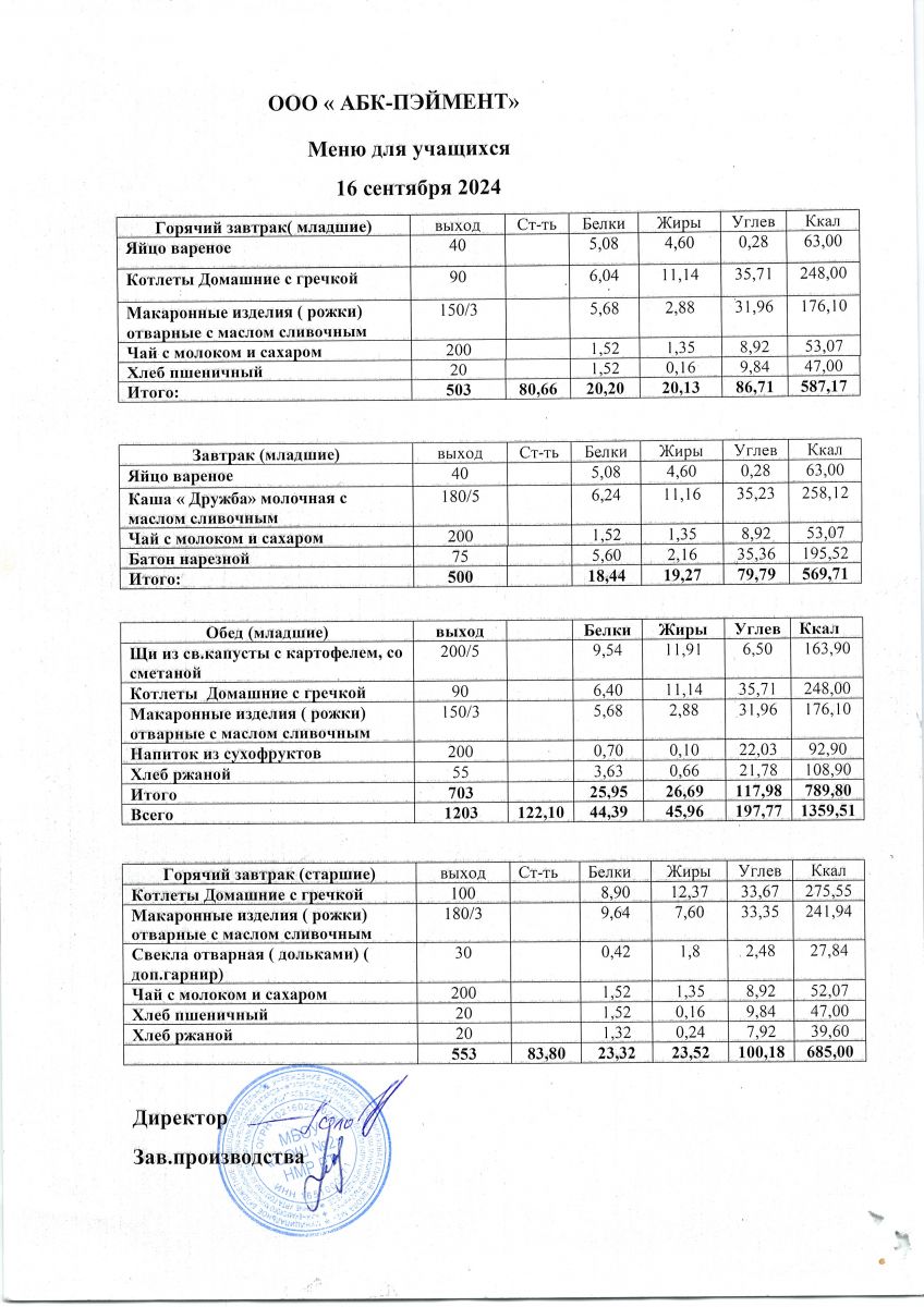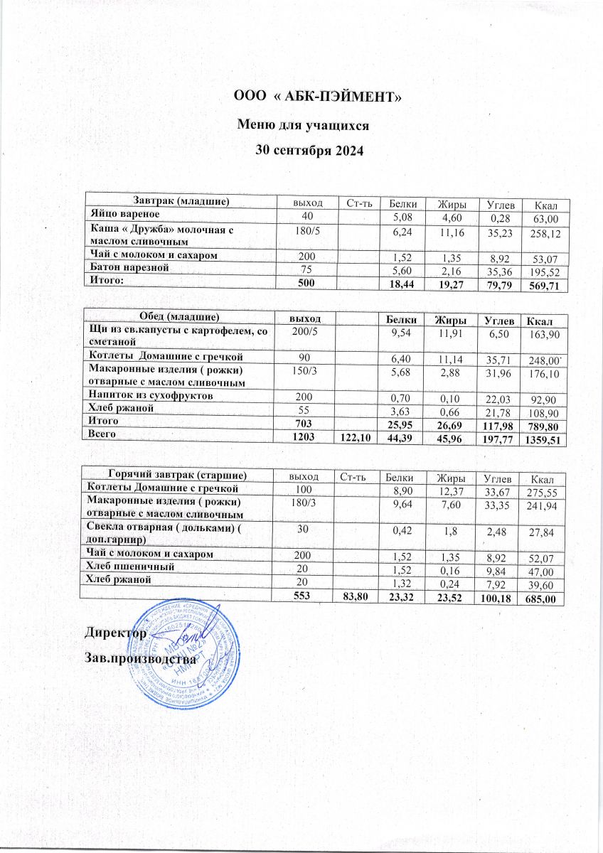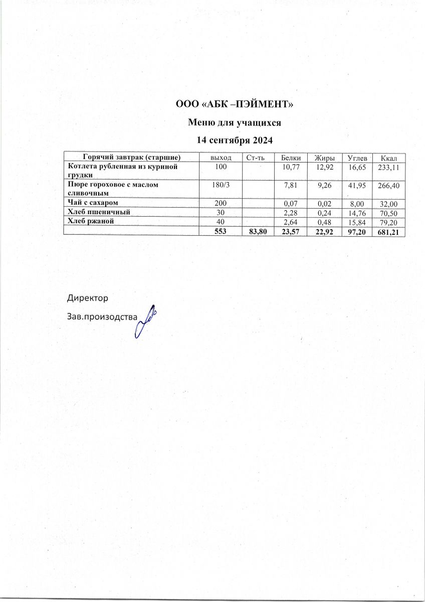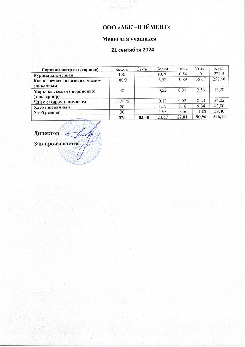 Меню на 24.09.2025