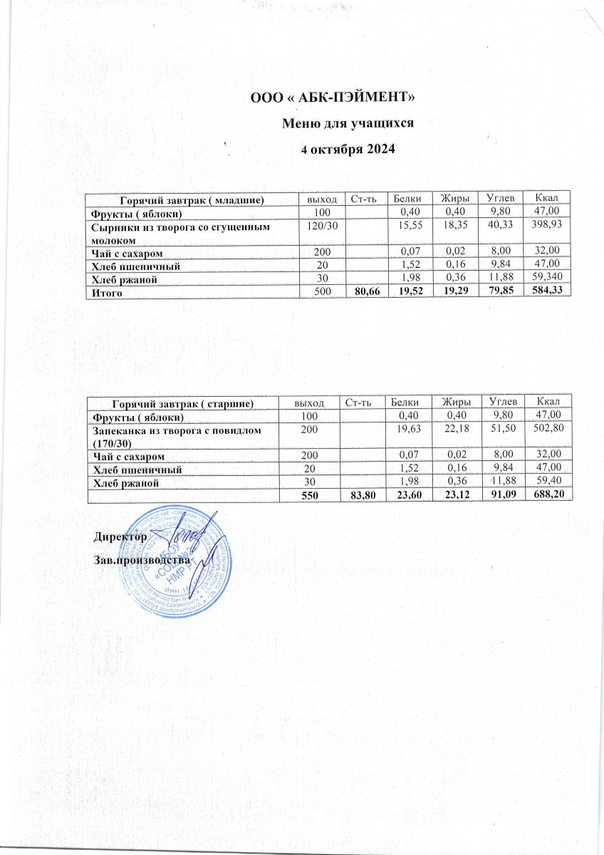 МЕНЮ на 04.10.2023