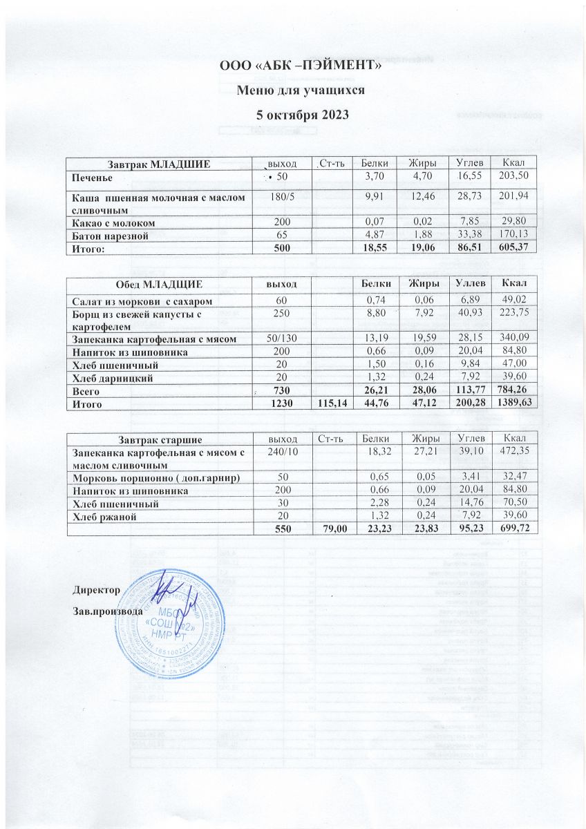 МЕНЮ на 05.10.2023